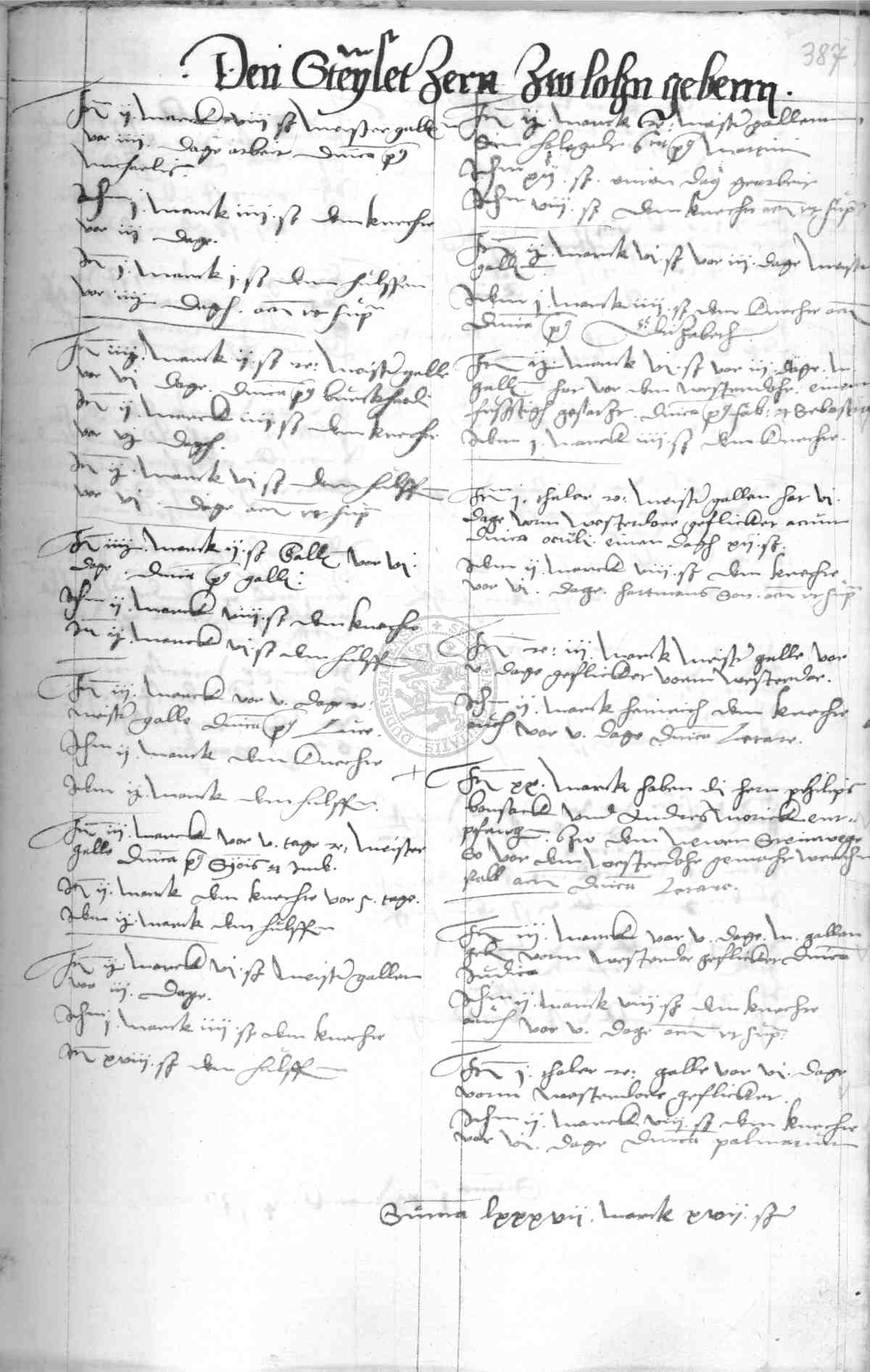 | Rubrum: | den steynsetzern zu lohn geben |