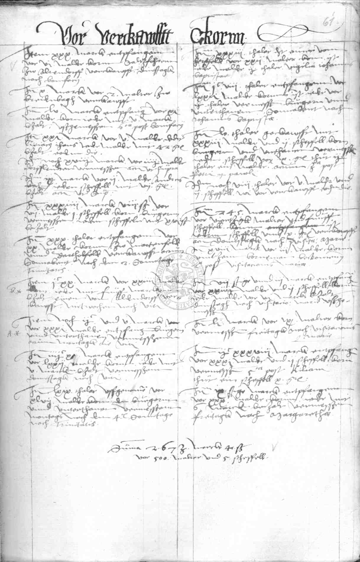 | Rubrum: | vor verkaufft korn |