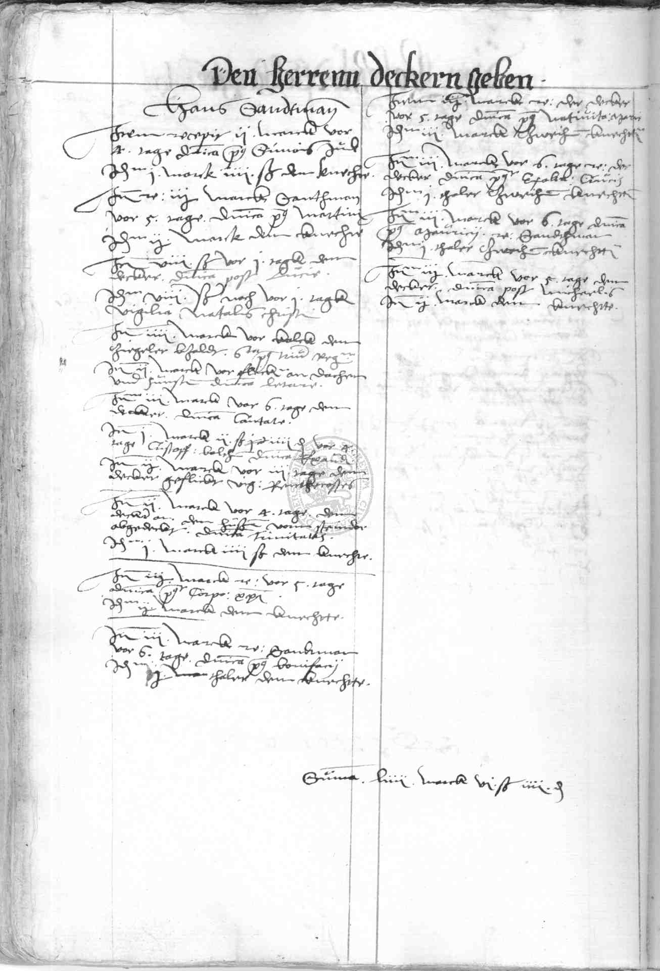 | Rubrum: | den herren deckern geben |