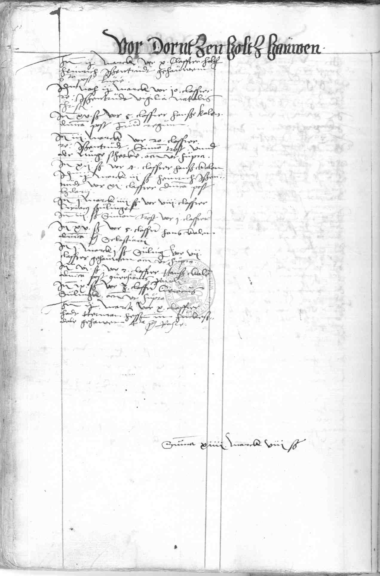 | Rubrum: | vor dorntzenholtz hauwen |