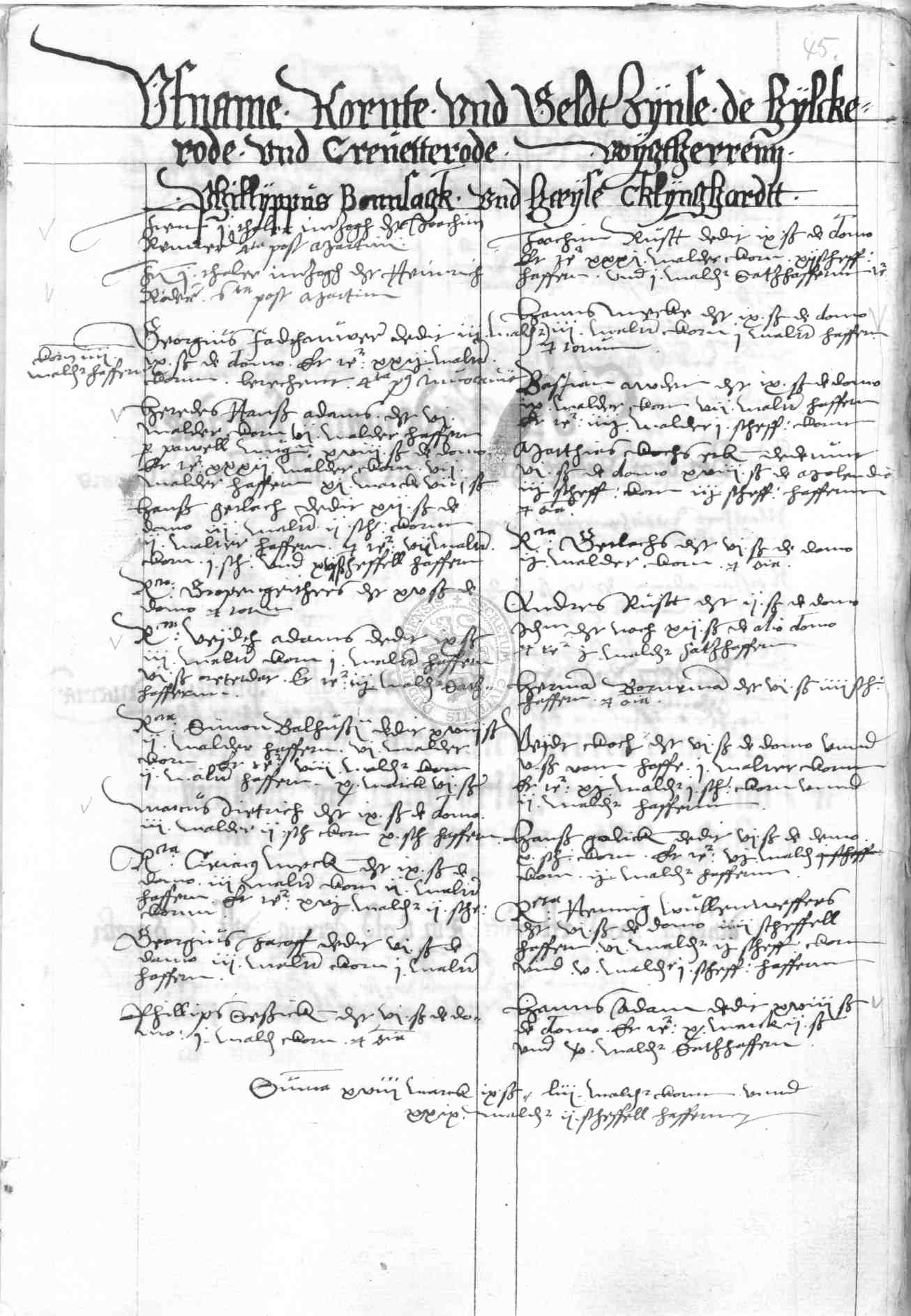 | Rubrum: | uffname kornte und geldtzynse de Hylckerode und Crevetterode |