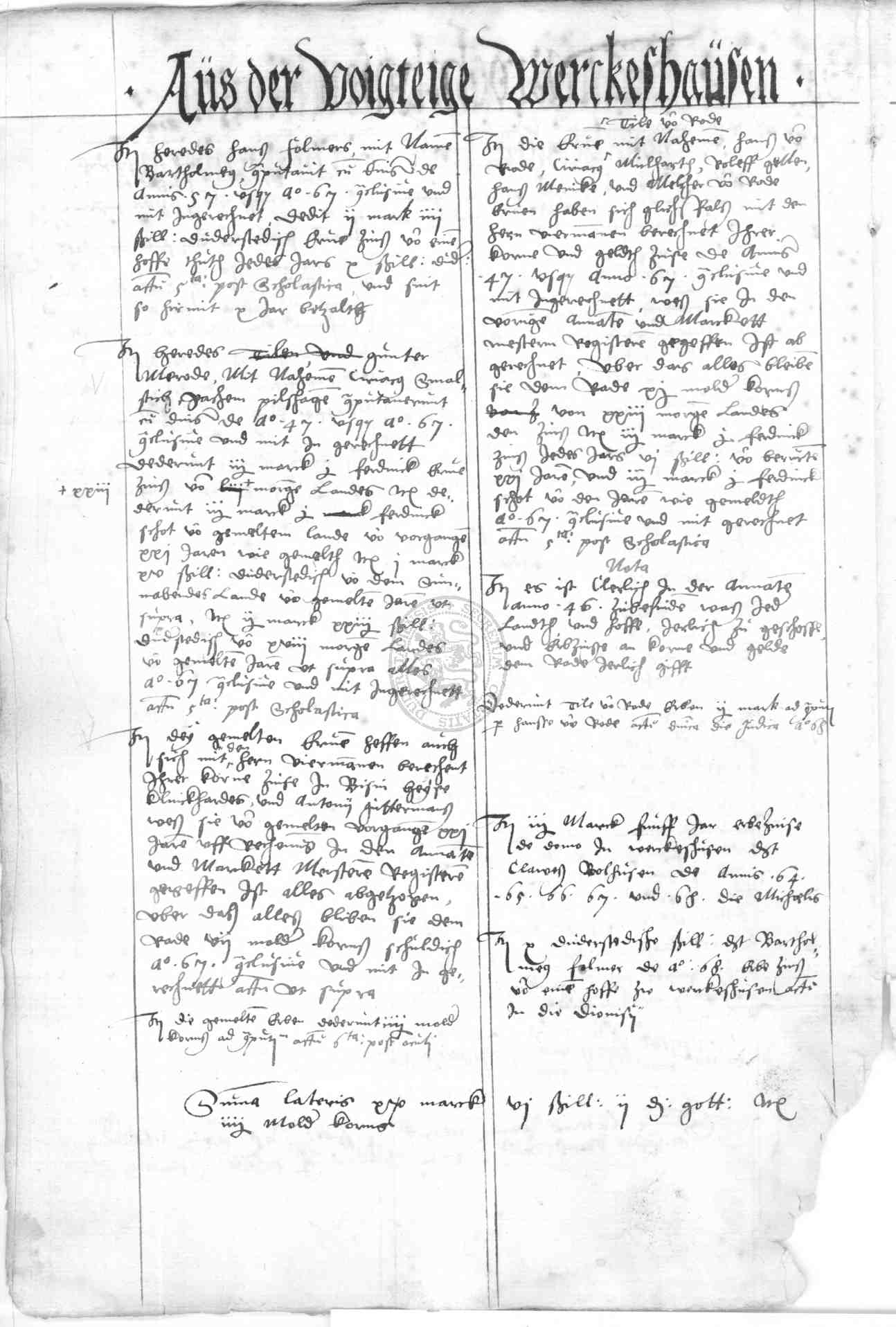 | Rubrum: | aus der voigteige Werckeshausen |
