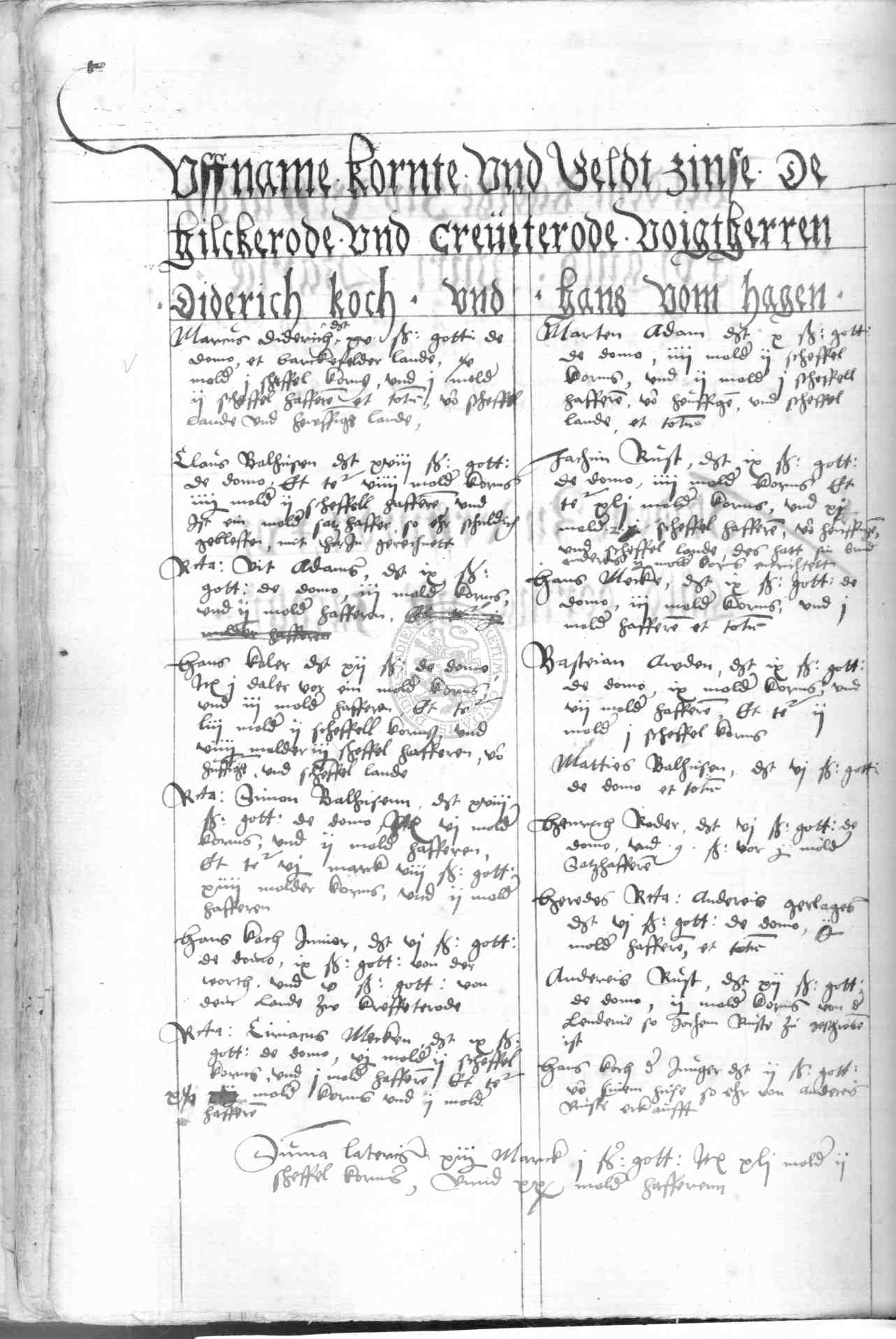 | Rubrum: | uffname kornte und geldtzinse de Hilckerode und Creveterode |