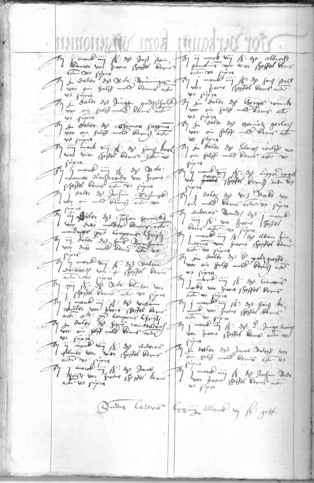| Rubrum: | vor verkaufft korne uffgenomen |