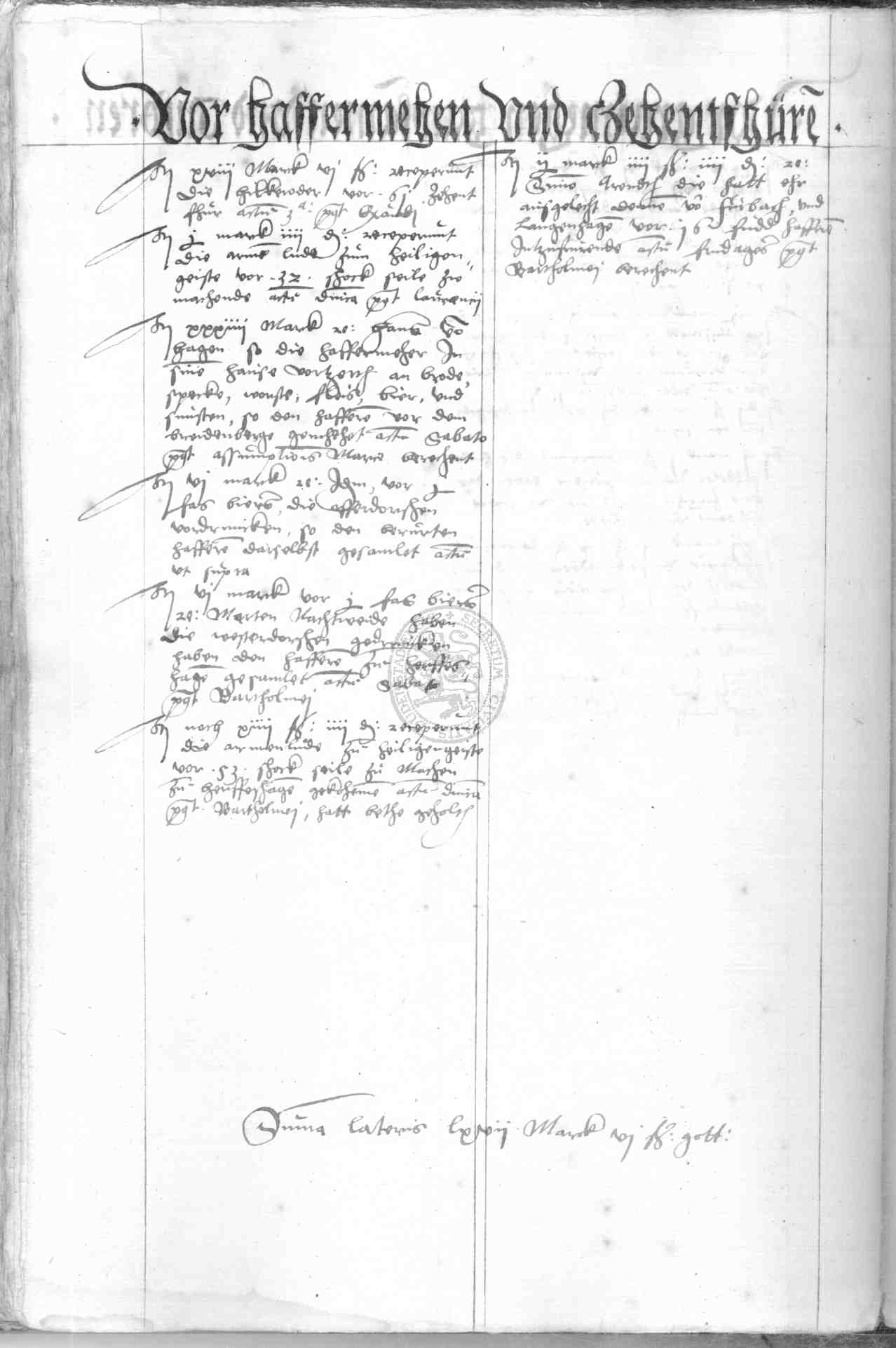 | Rubrum: | vor haffermehen und zehentforen |