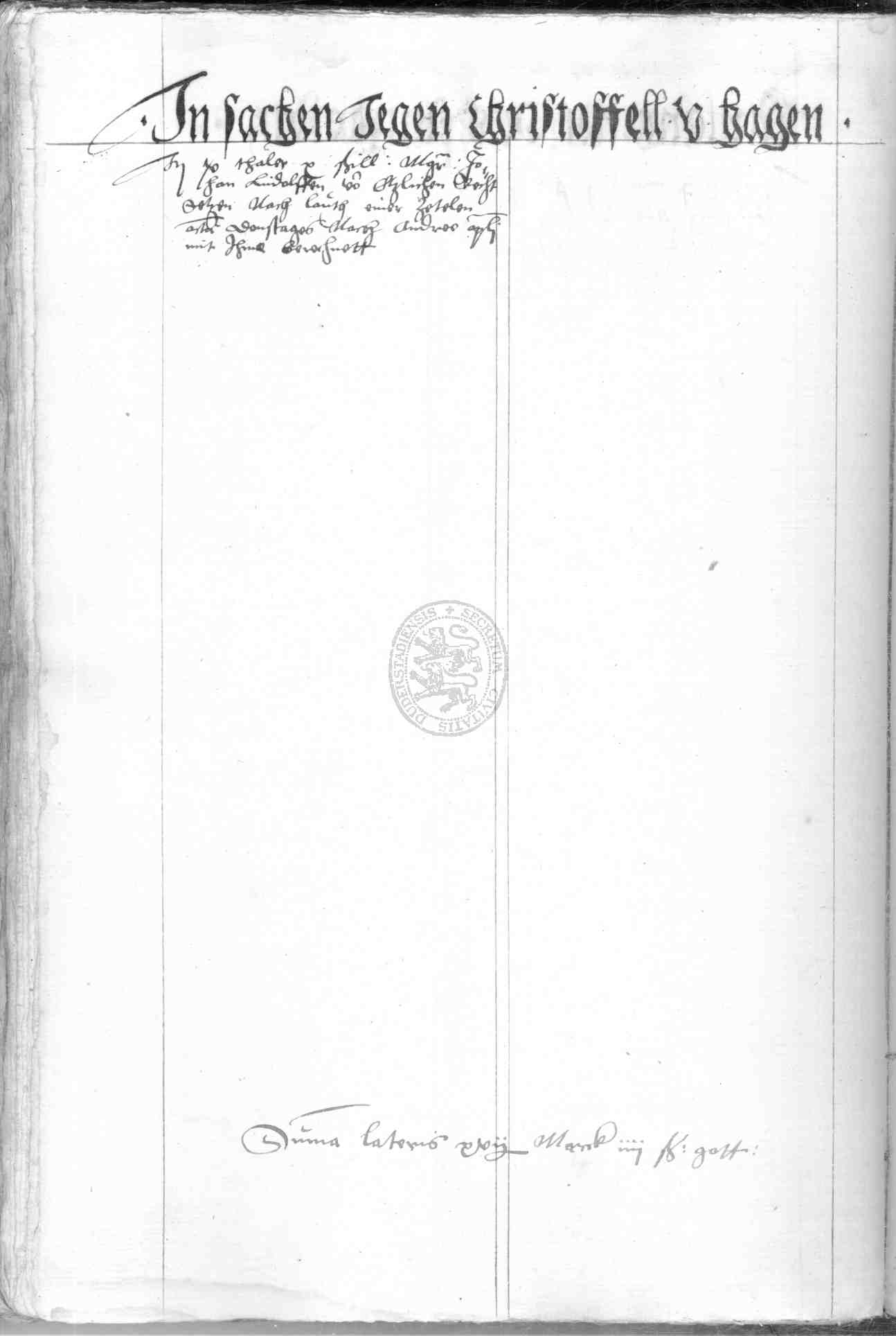 | Rubrum: | in sachen jegen Christoffel vom Hagen |