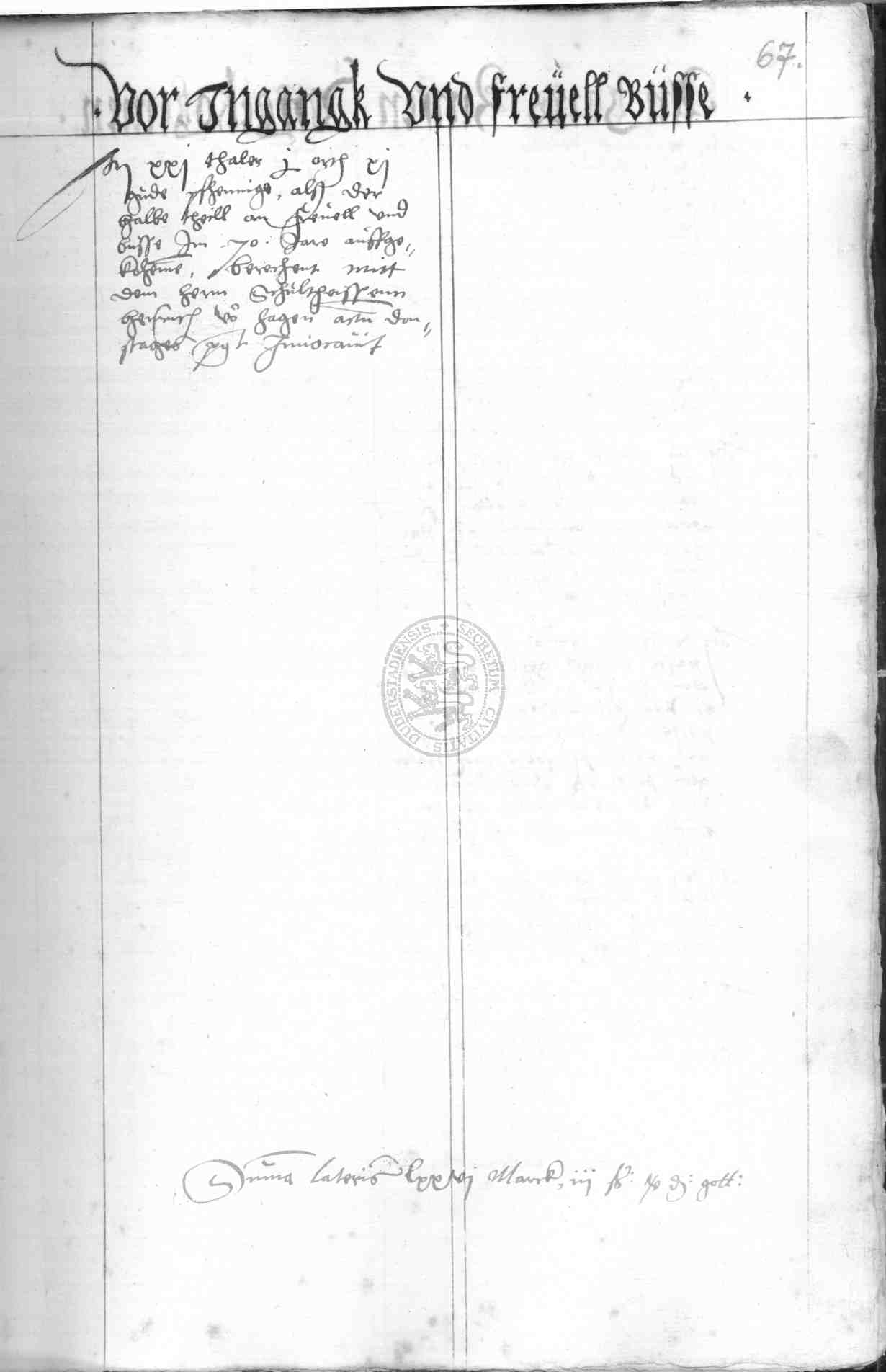 | Rubrum: | vor ingangk und frevel busse |