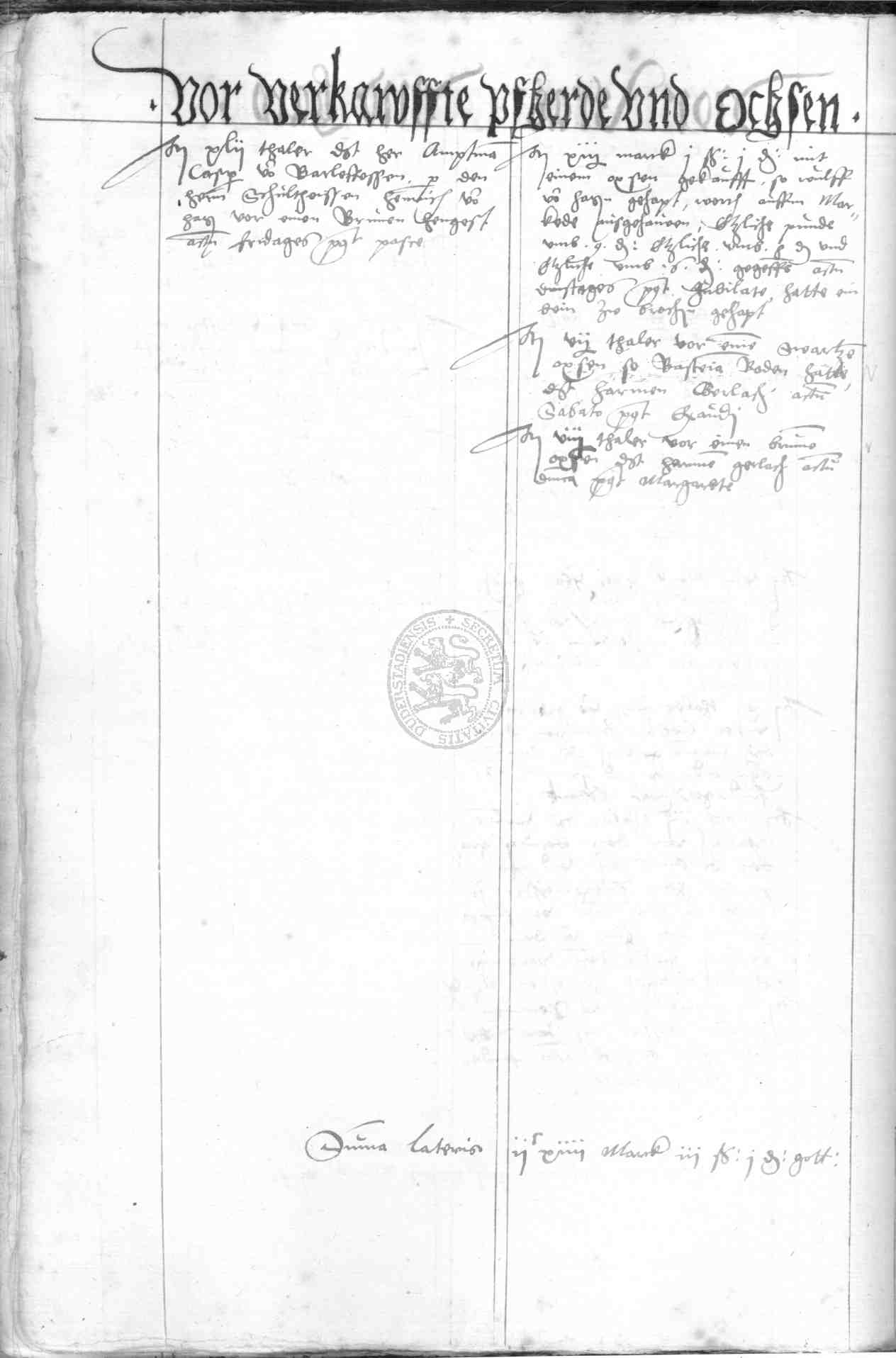 | Rubrum: | vor verkauffte pfherde und ossen |