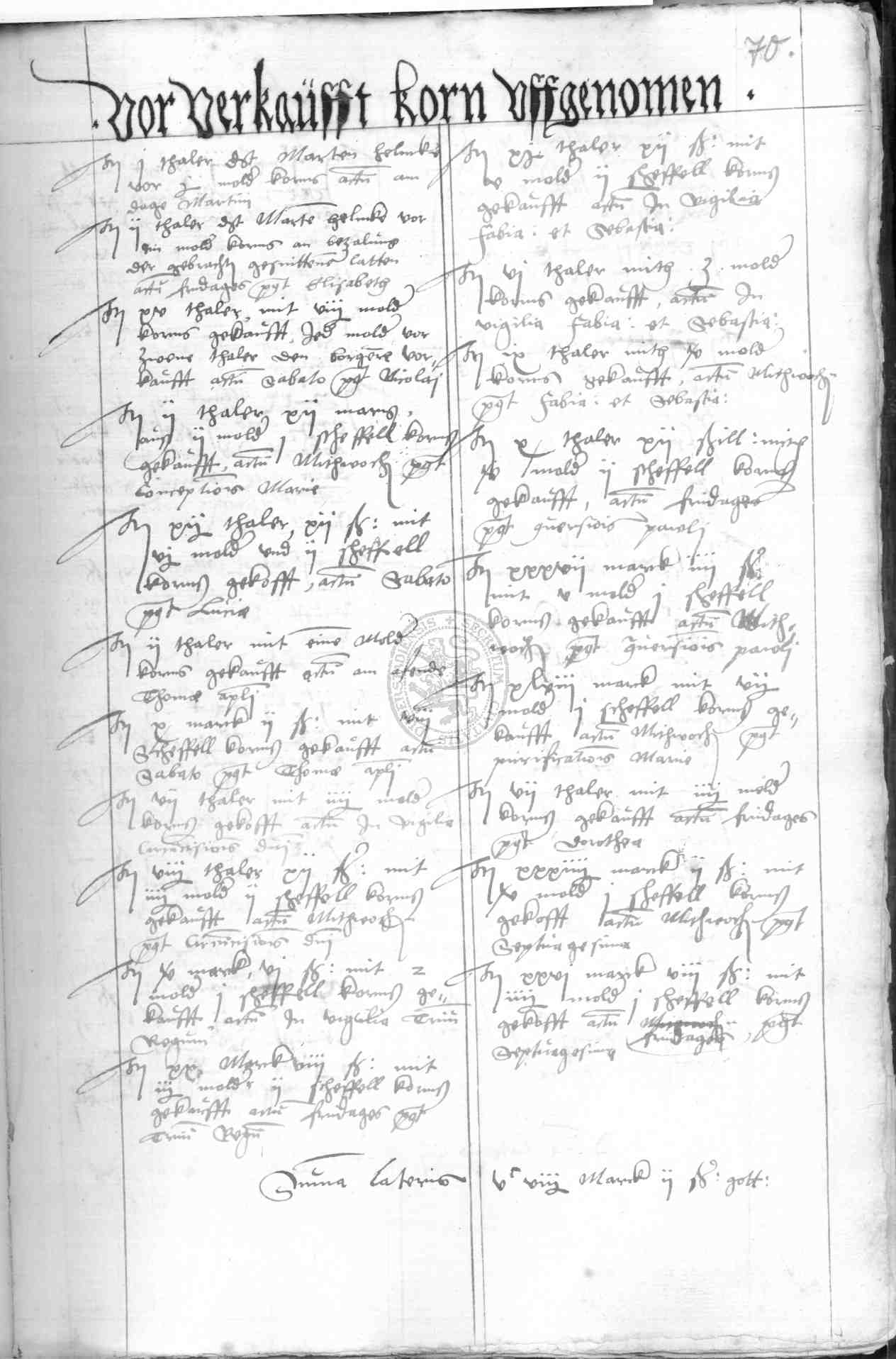 | Rubrum: | vor verkaufft korne uffgenomen |