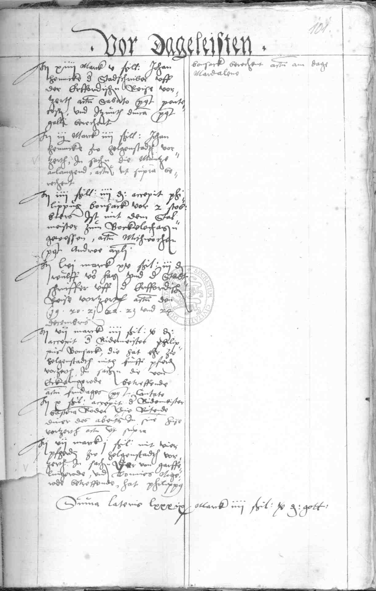 | Rubrum: | vor dageleisten |