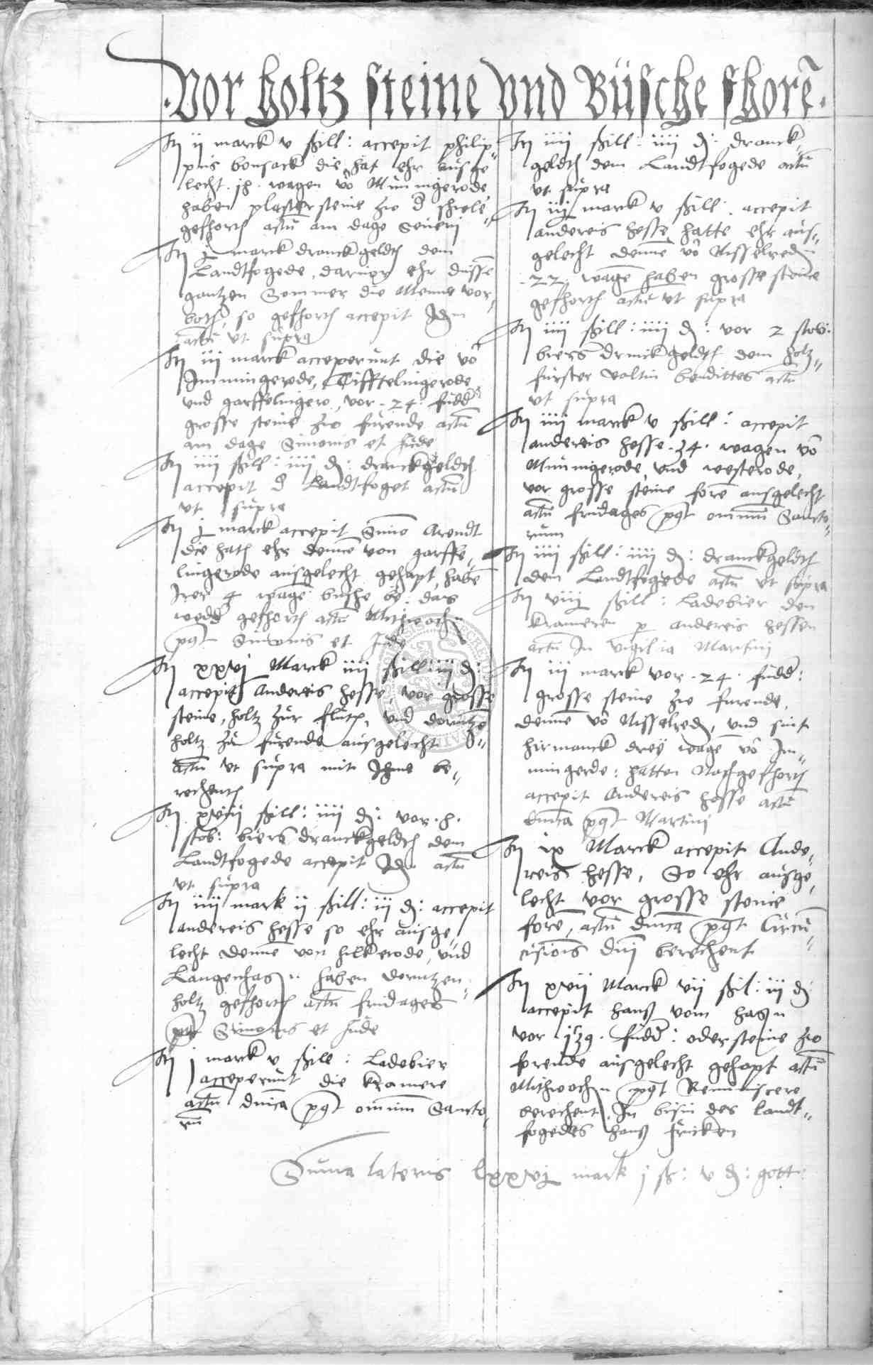 | Rubrum: | vor holtz, steine und busche fhoren |