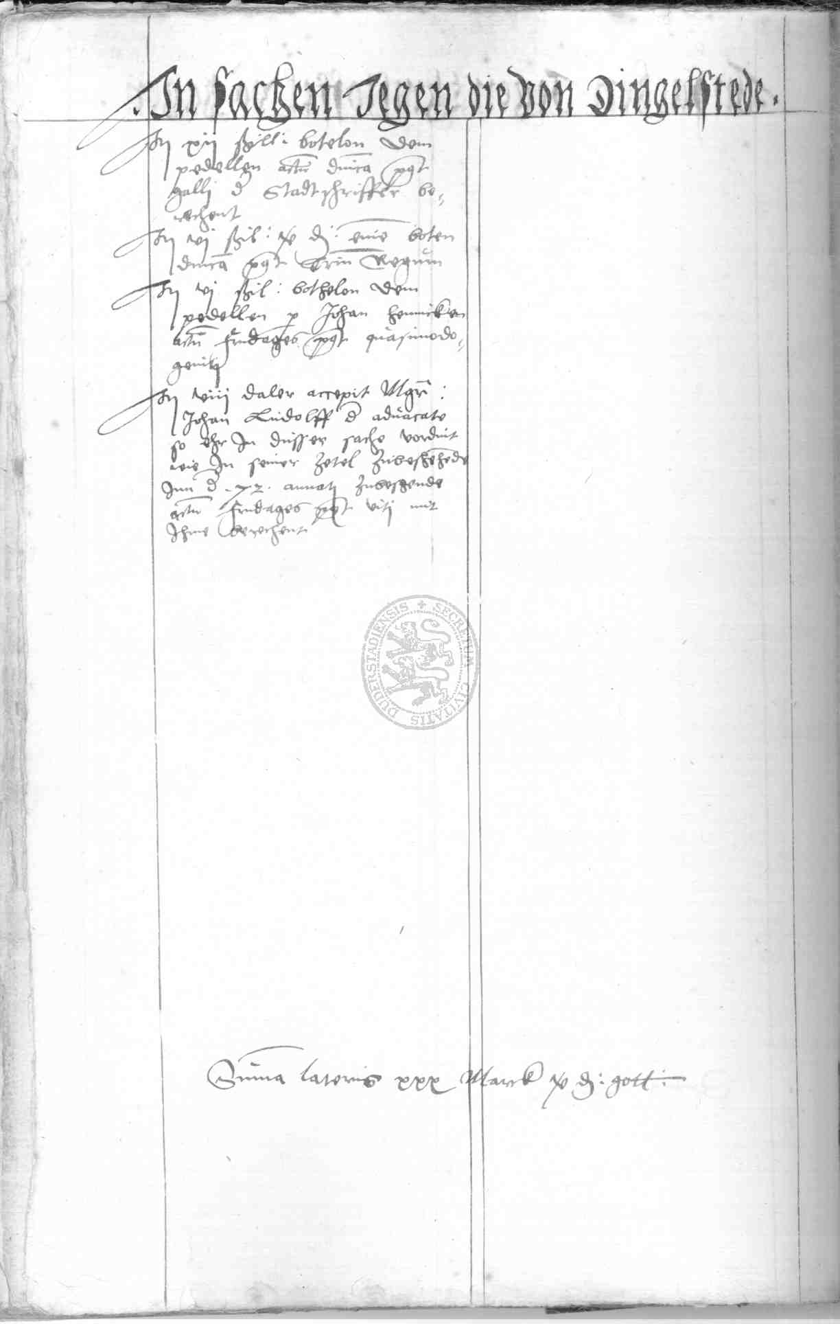 | Rubrum: | in sachen jegen die von Dingelsteden |