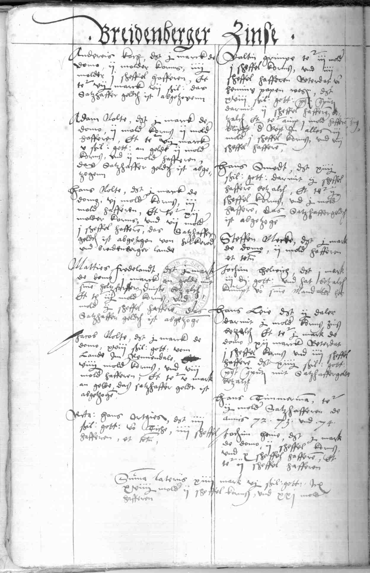 | Rubrum: | Breidenberger zinse |