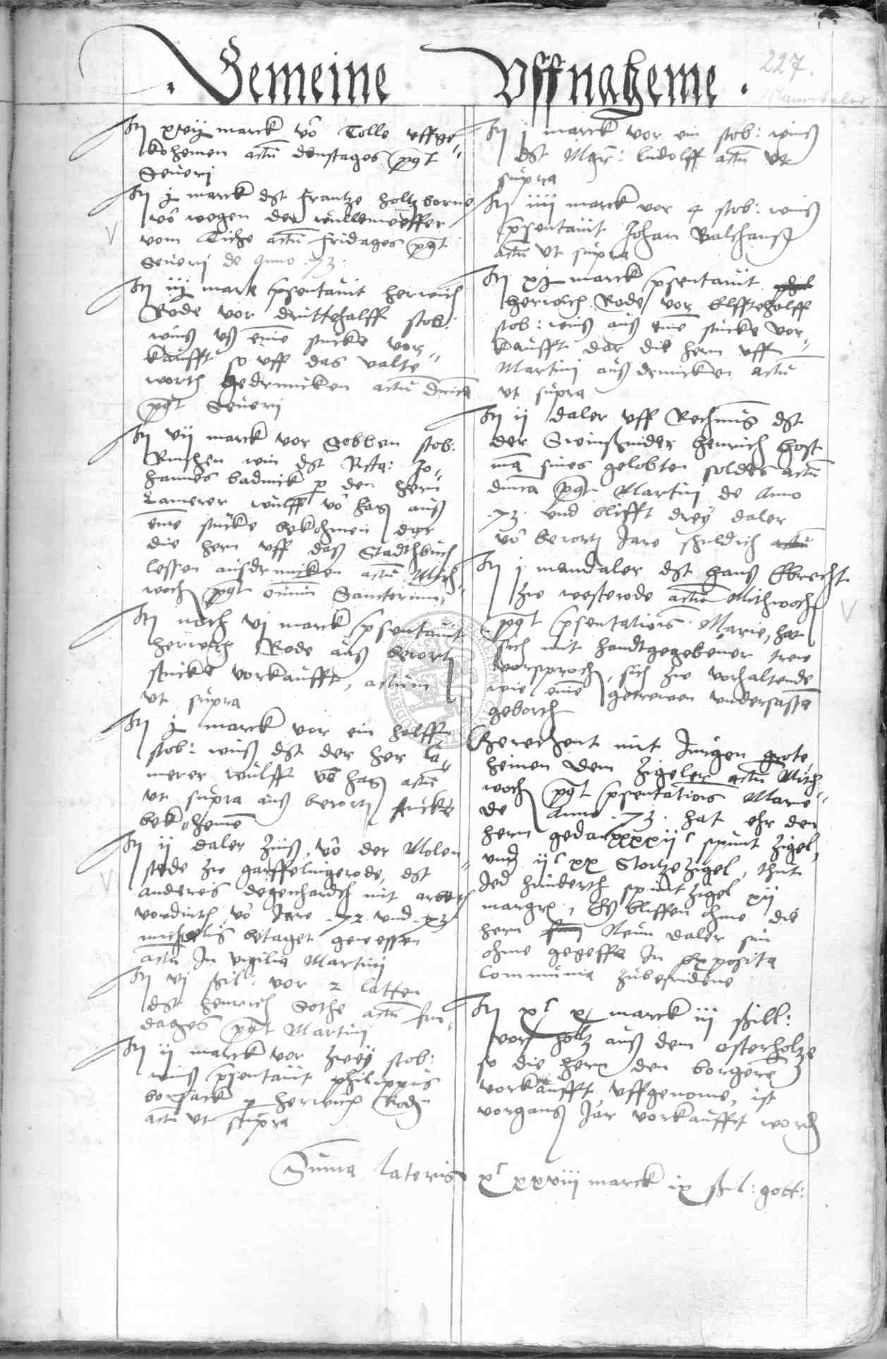 | Rubrum: | gemeine uffnaheme |