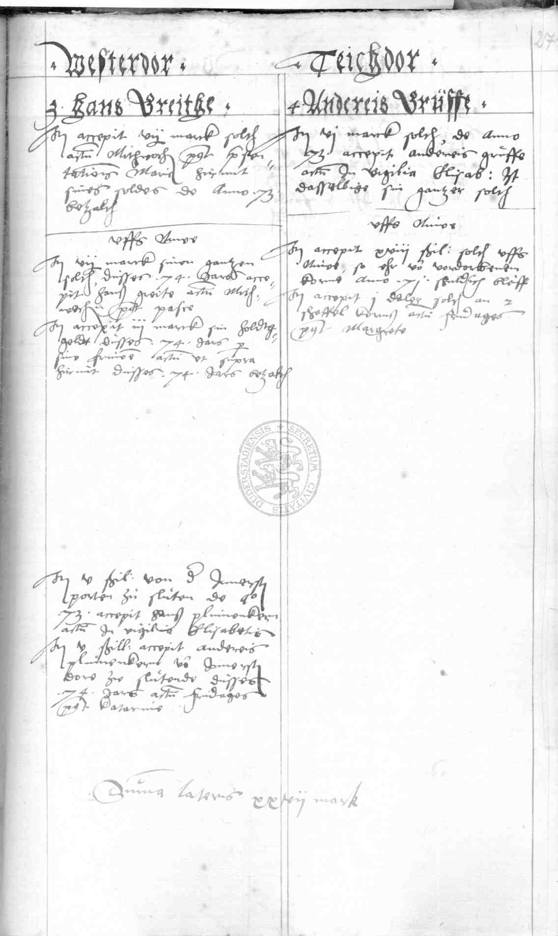 | Subrubrum: | [Torwärter] westerdor |