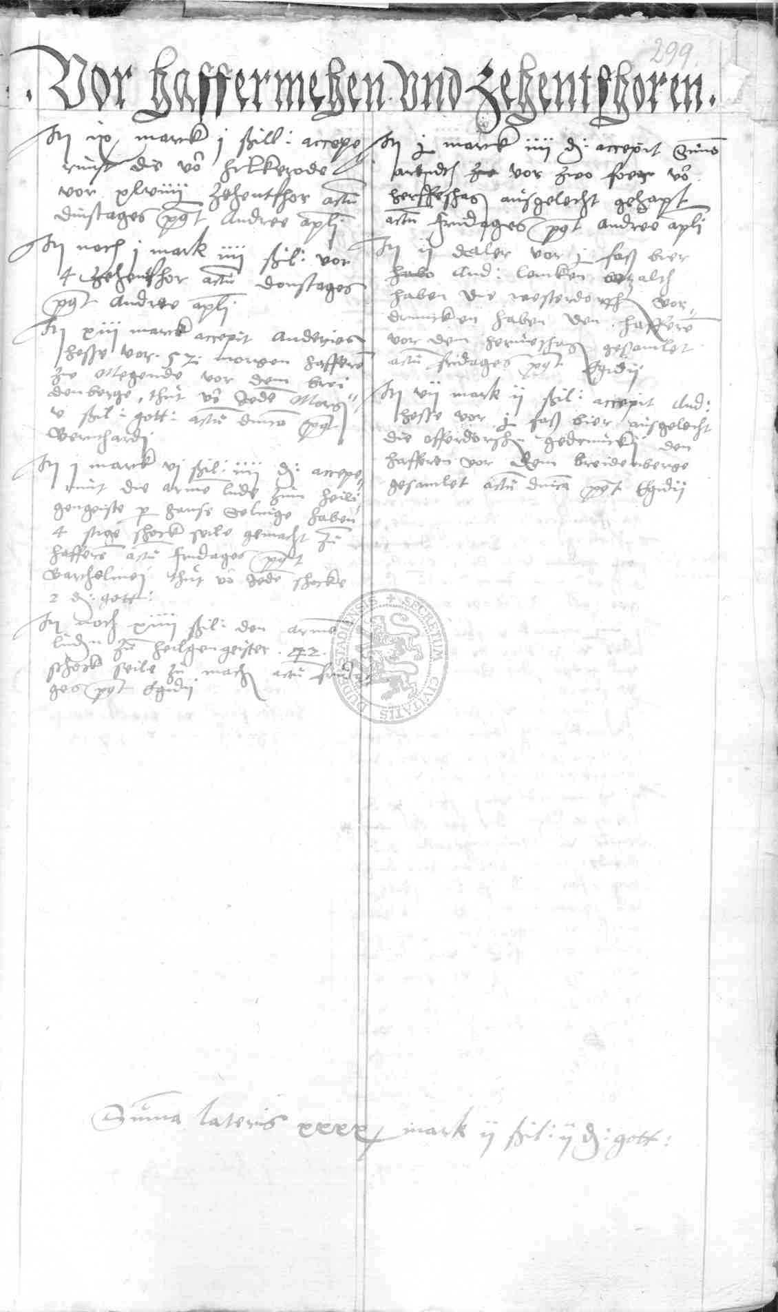 | Rubrum: | vor haffermehen und zehentforen |