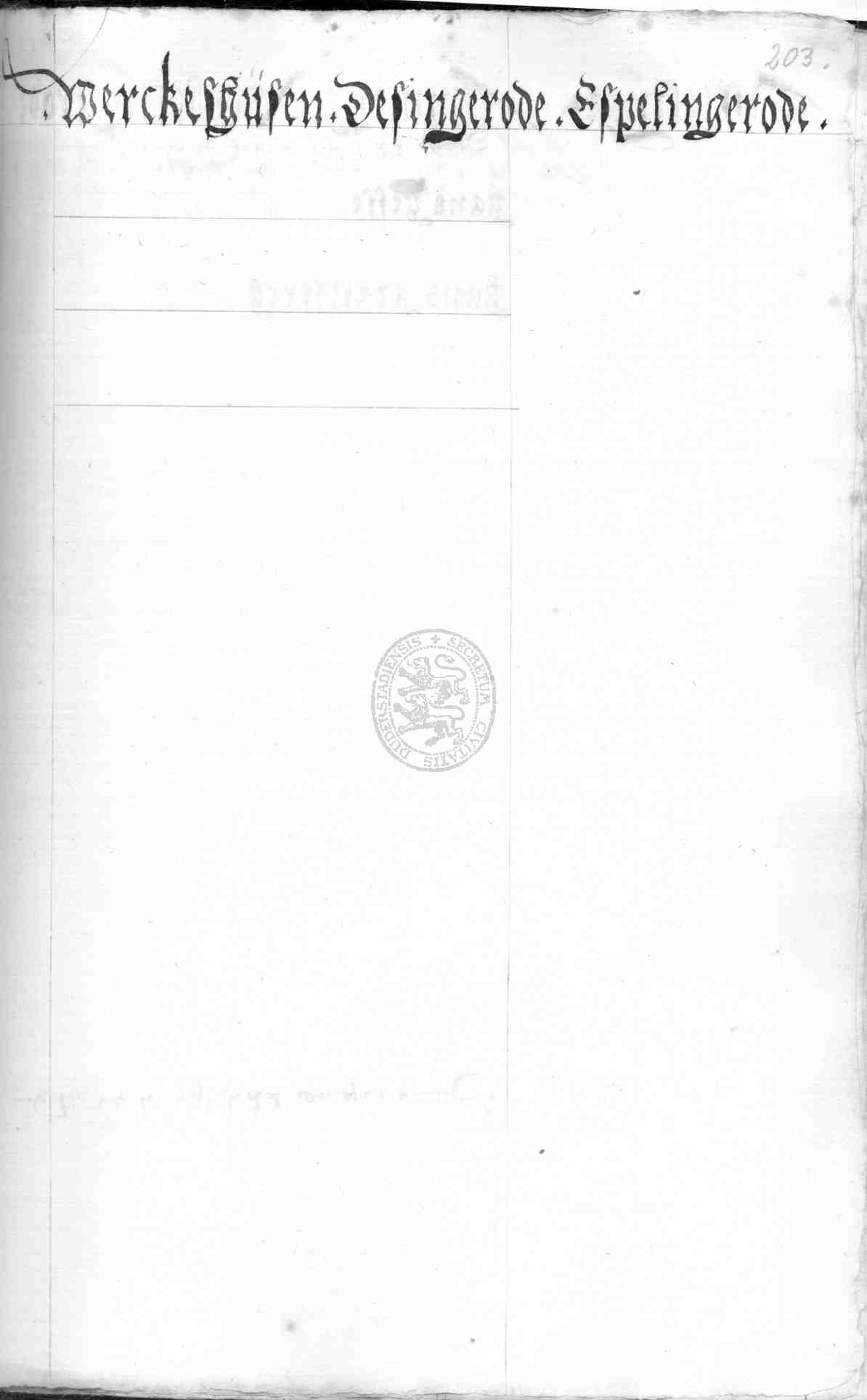 | Rubrum: | Werckeshusen, Desingerode, Espelingerode |