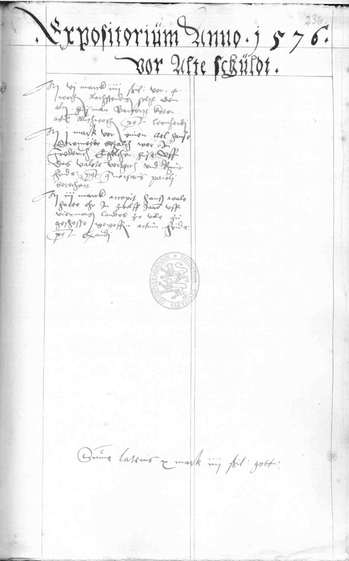 | Rubrum: | expositorium anno 1576 vor alte schuldt |