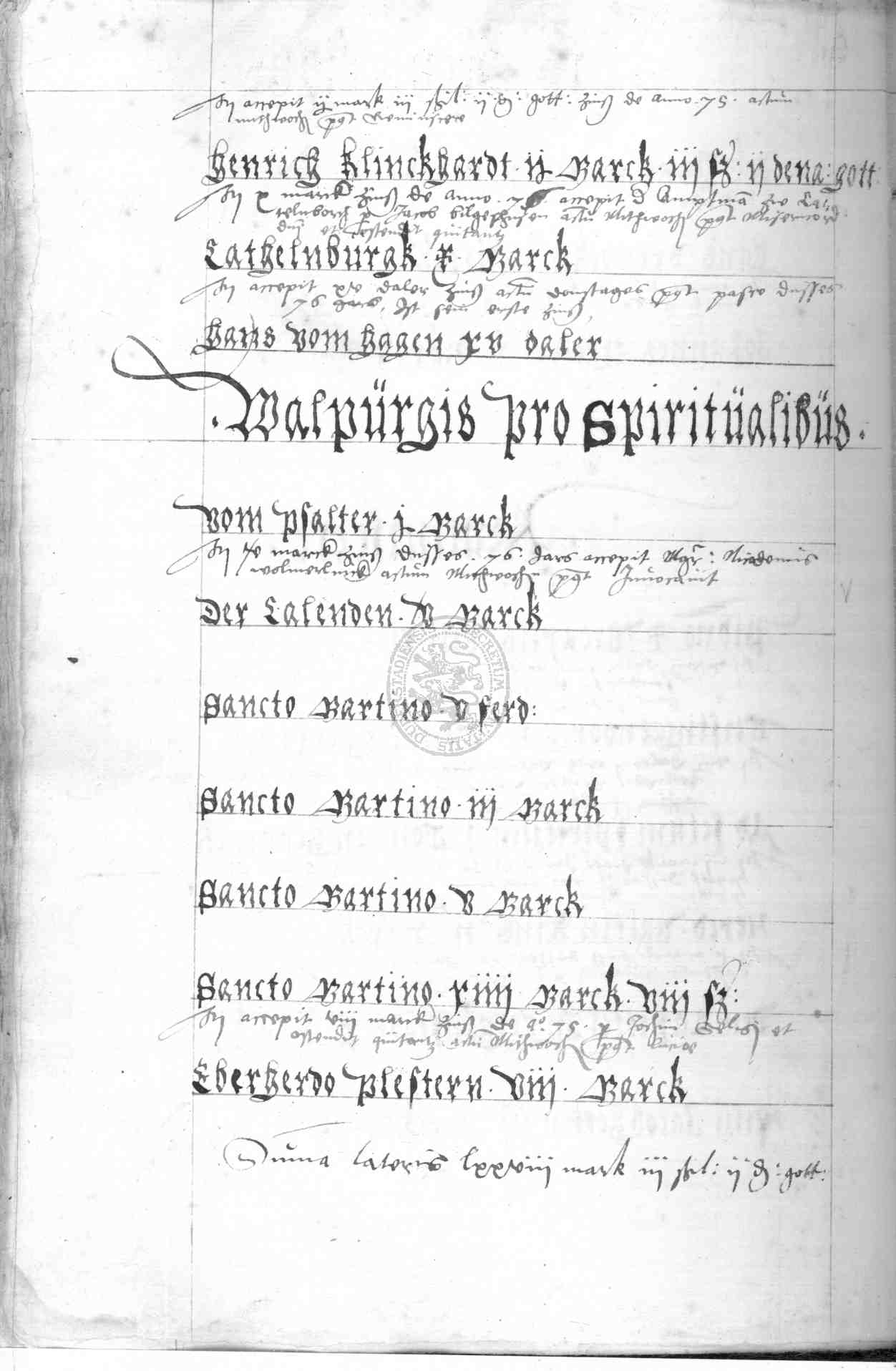 | Rubrum: | Walpurgis pro spiritualibus |