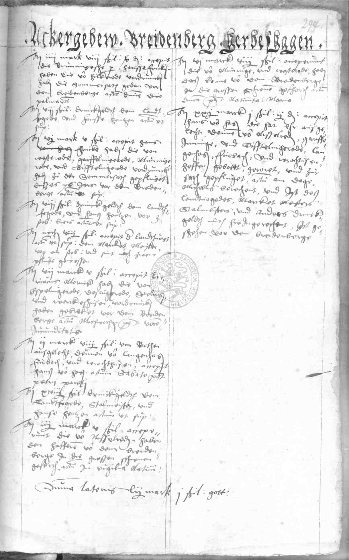 | Rubrum: | ackergebeu Bredenberg, Herbeshagen |