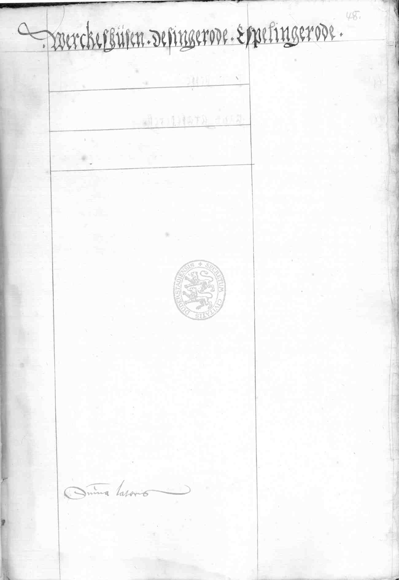 | Rubrum: | Werckeshusen, Desingerode, Espelingerode |