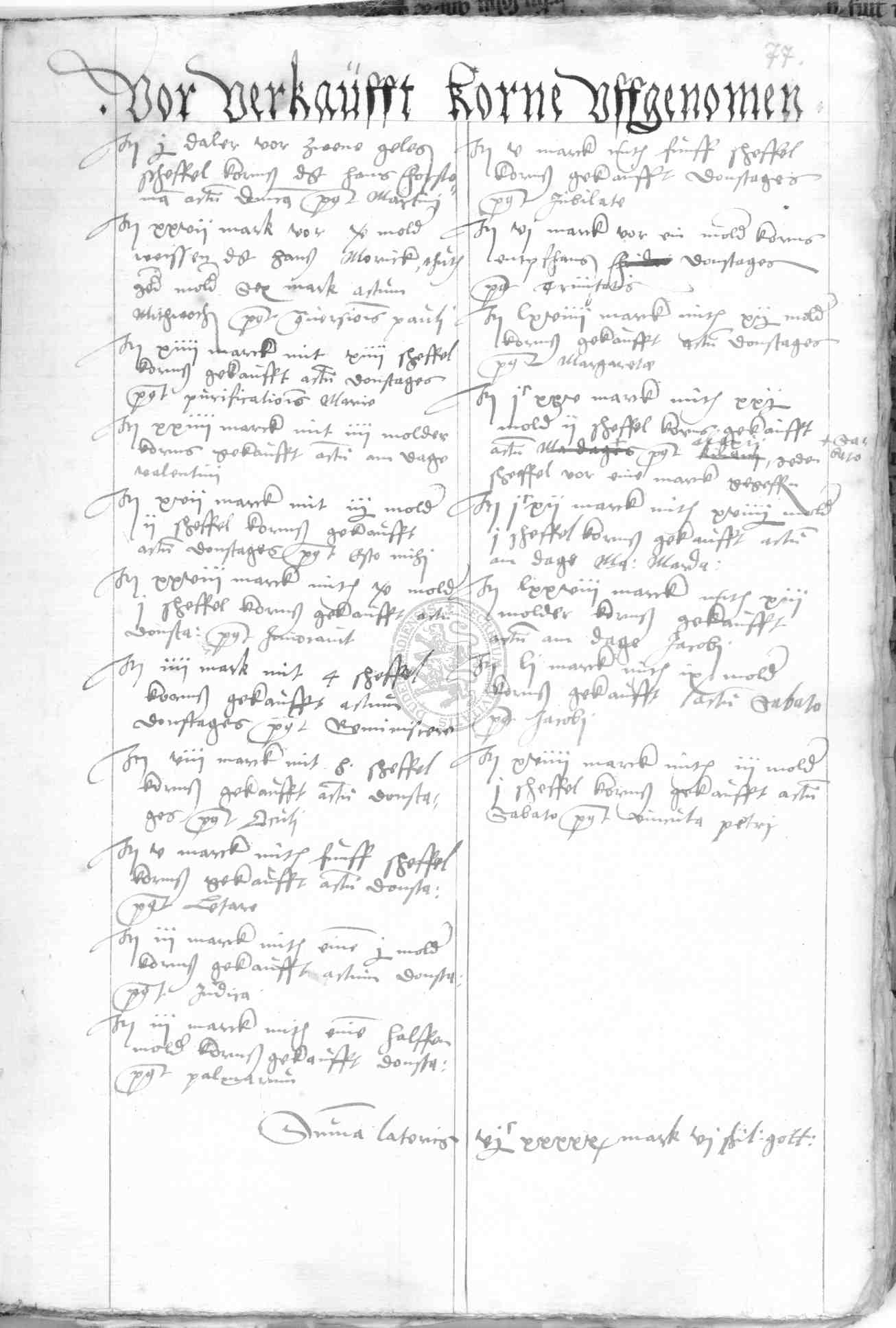 | Rubrum: | vor verkaufft korne uffgenomen |