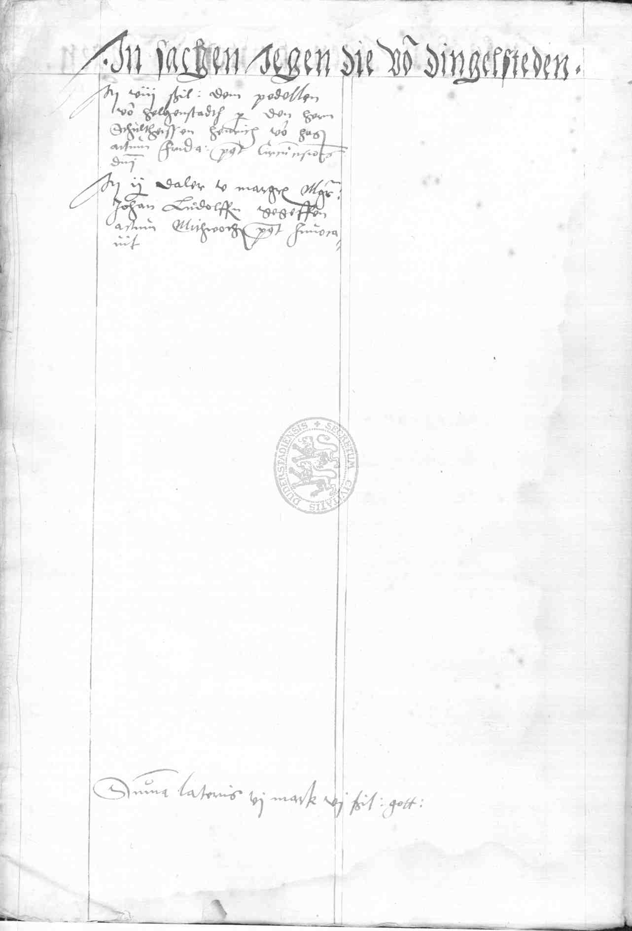 | Rubrum: | in sachen jegen die von Dingelsteden |