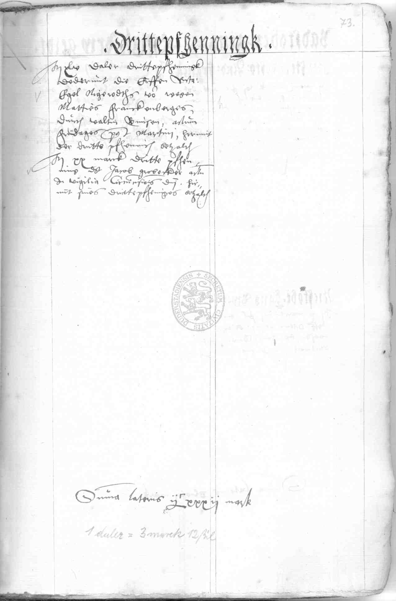 | Rubrum: | drittepfenningk |