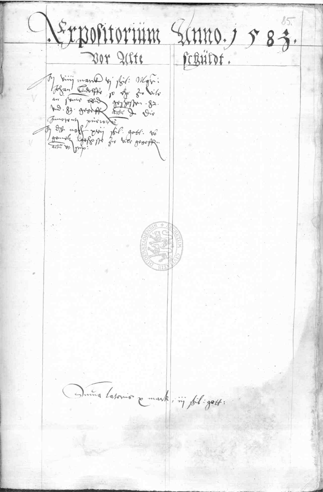 | Rubrum: | expositorium anno 1583 vor alte schuldt |