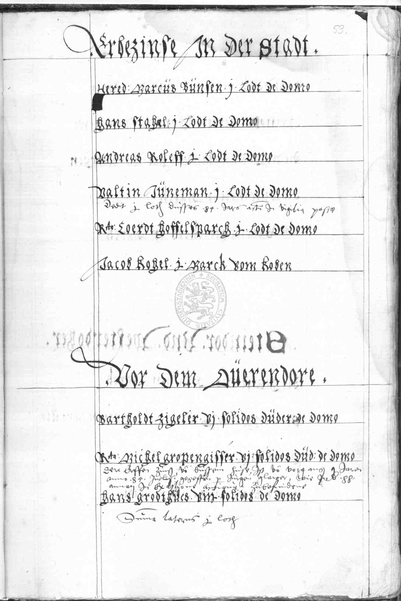 | Rubrum: | [erbezinse] vor dem Overendore |