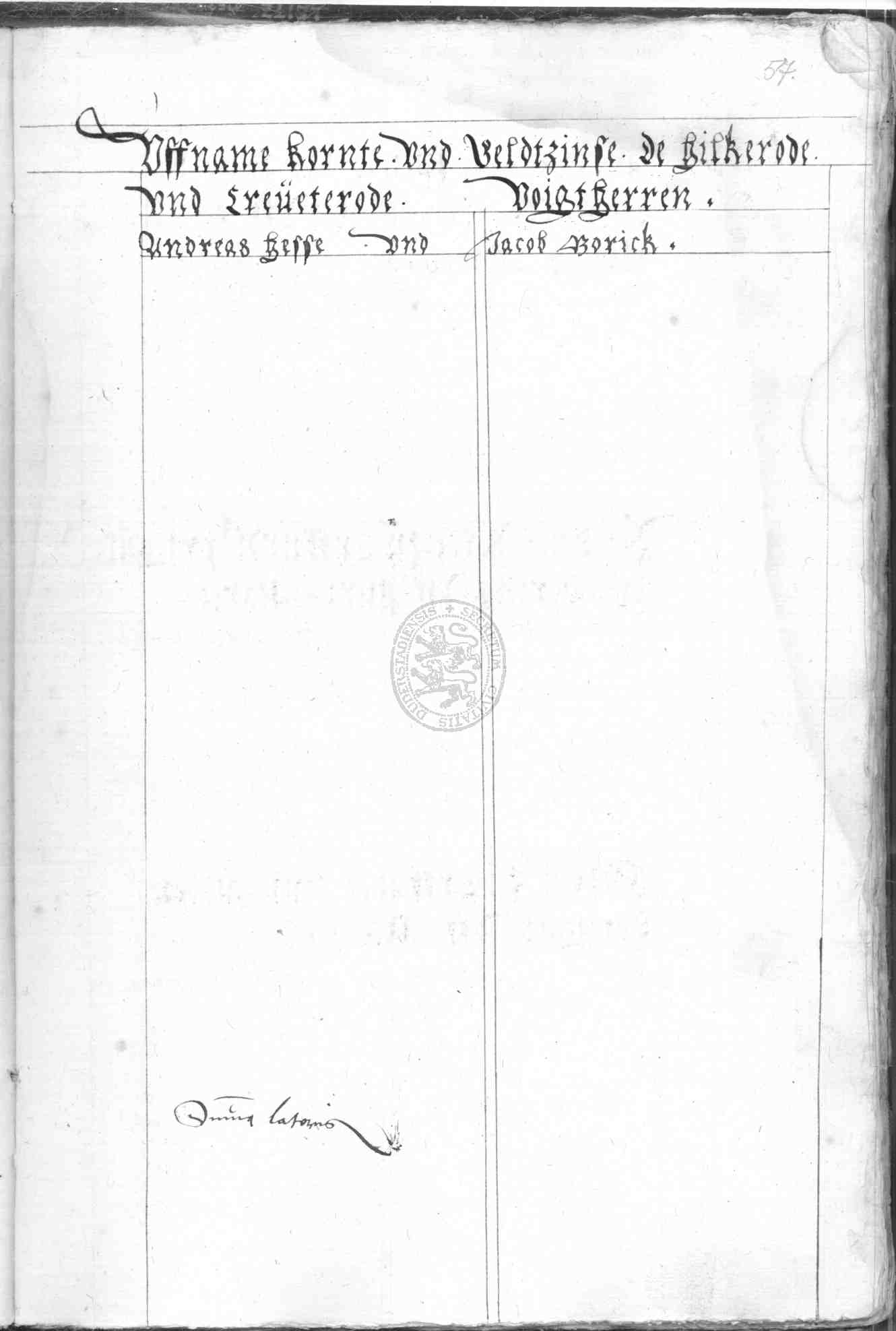| Rubrum: | uffname kornte und geldtzinse de Hilkerode und Creveterode |