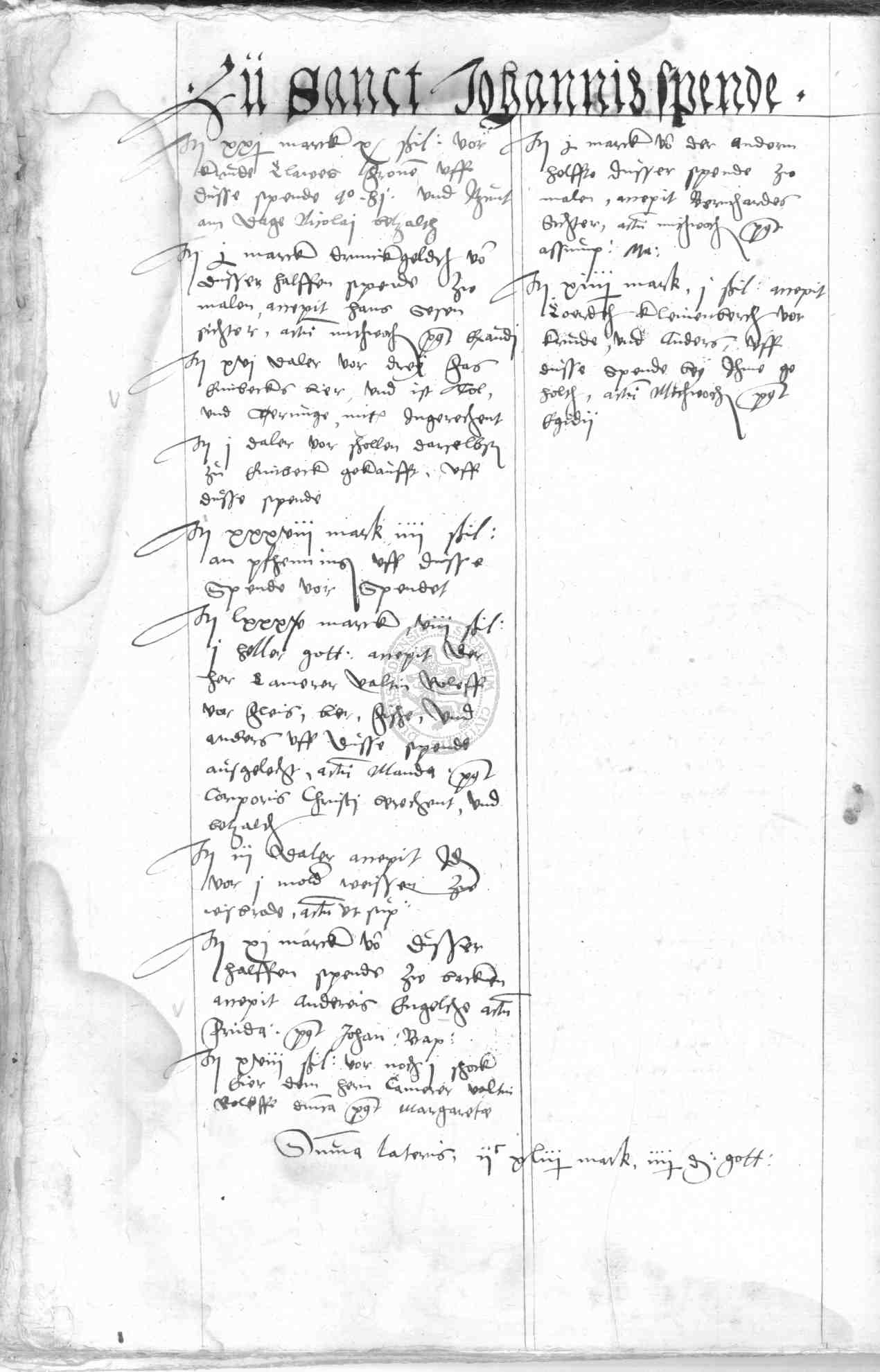 | Rubrum: | zu Sanct Johannis spende |
