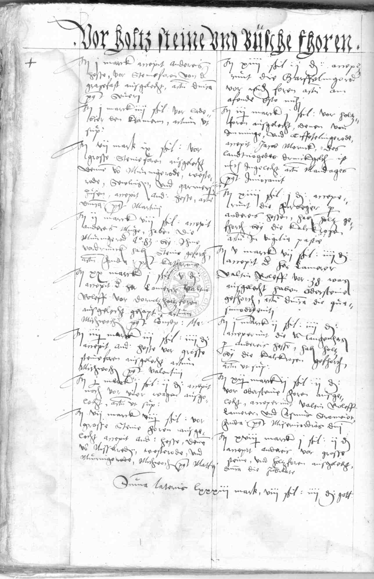 | Rubrum: | vor holtz, steine und busche fhoren |
