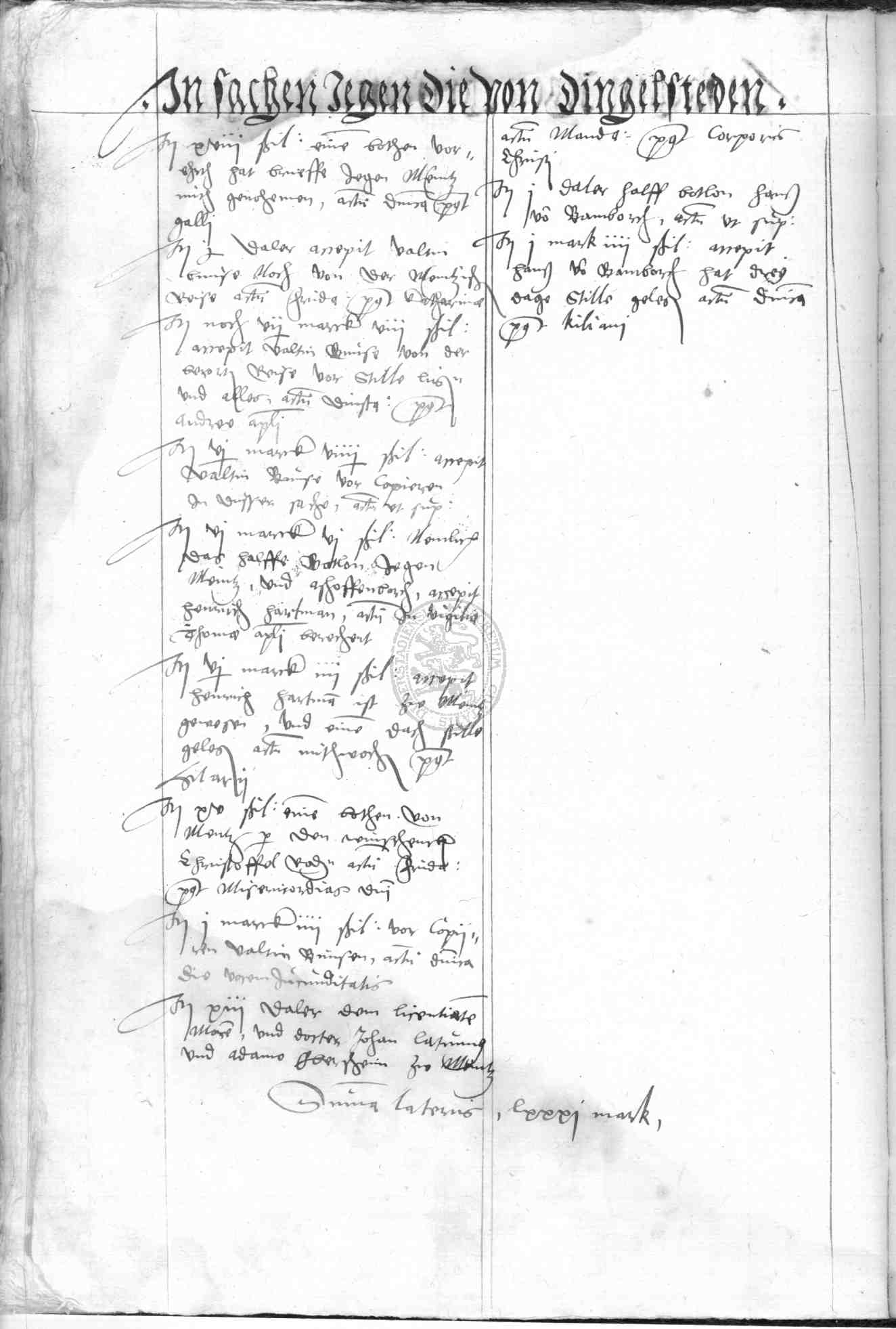 | Rubrum: | in sachen jegen die von Dingelsteden |