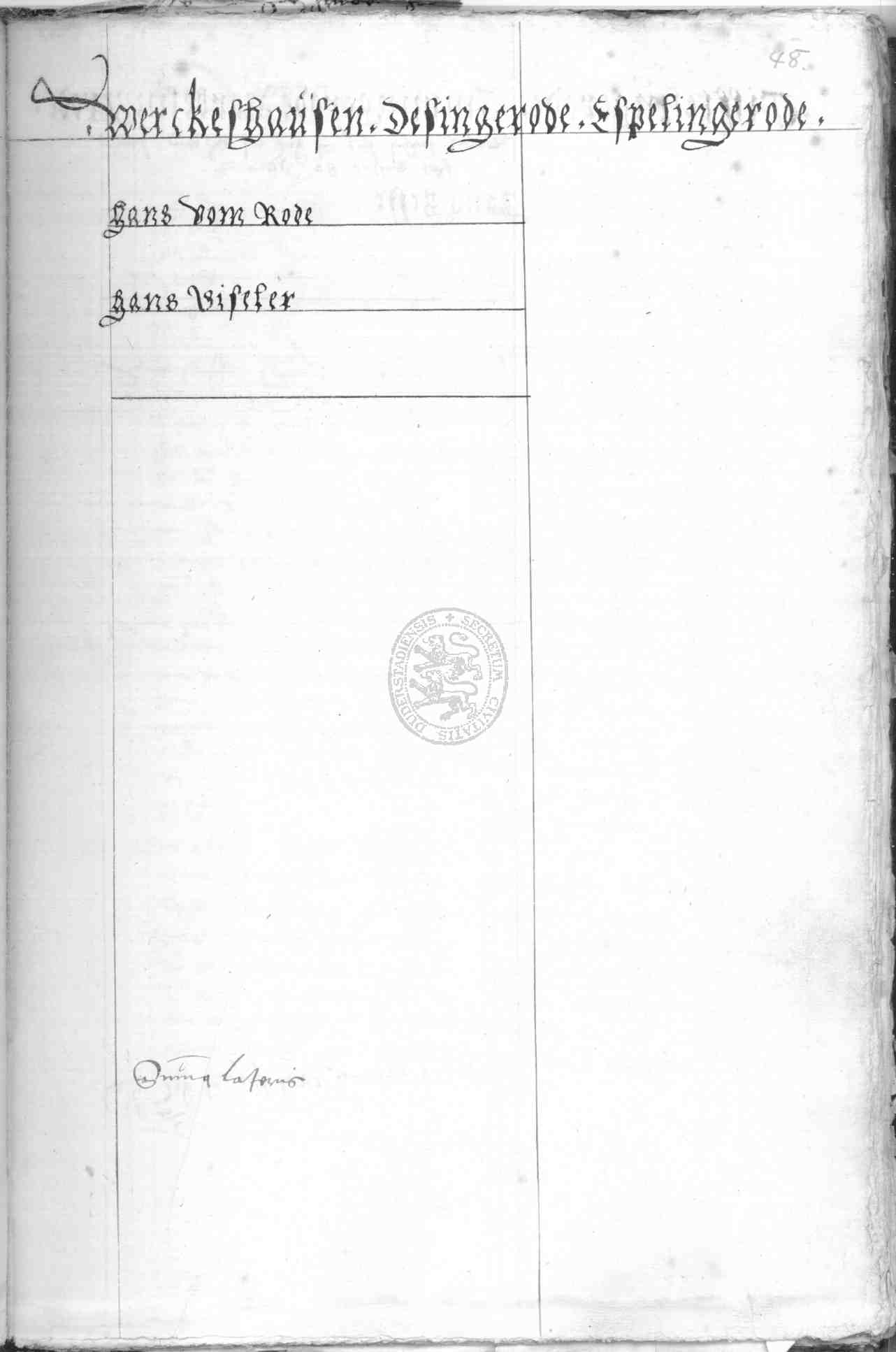 | Rubrum: | Werckeshausen, Desingerode, Espelingerode |