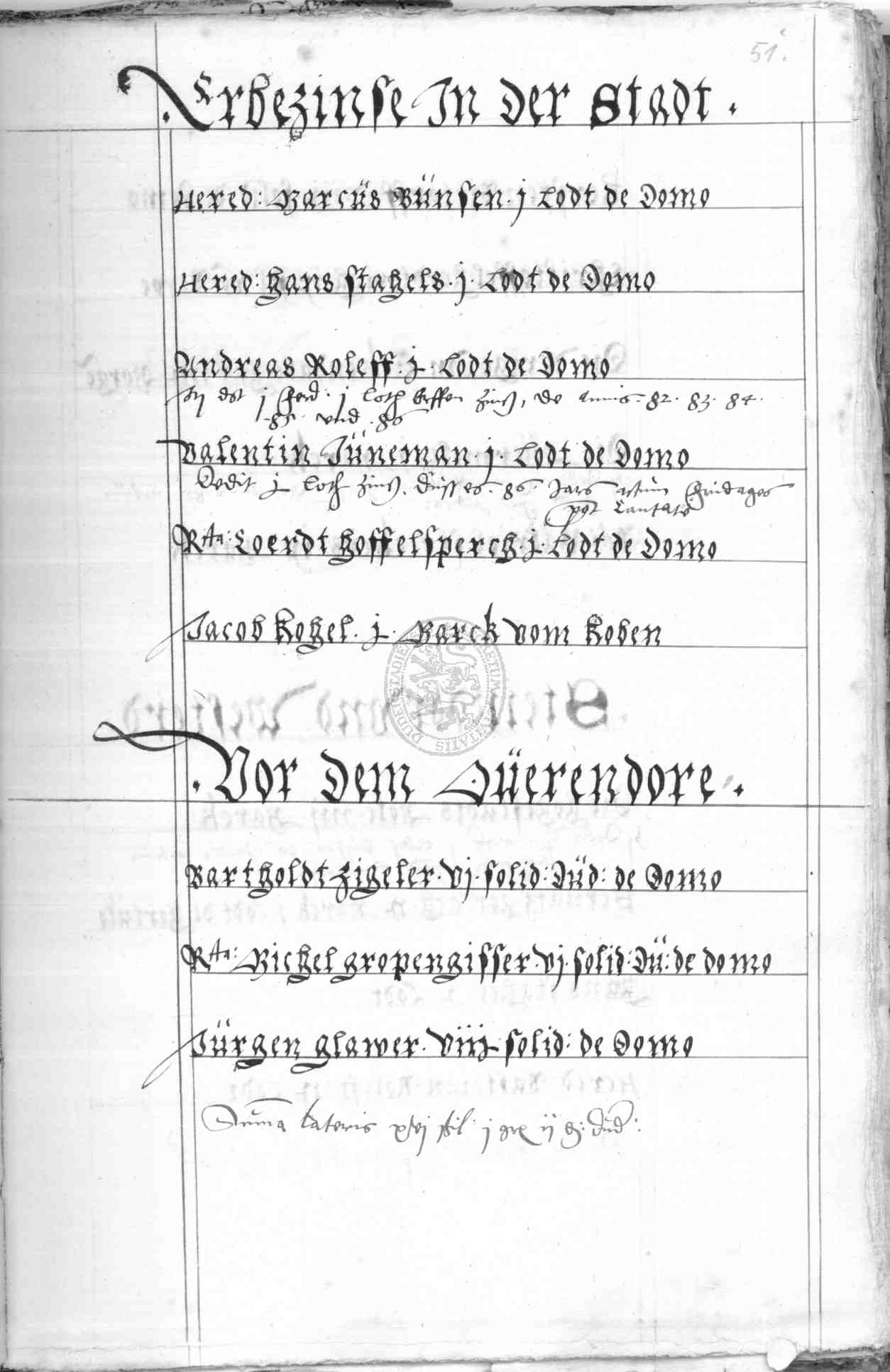 | Rubrum: | [erbezinse] vor dem Overendore |