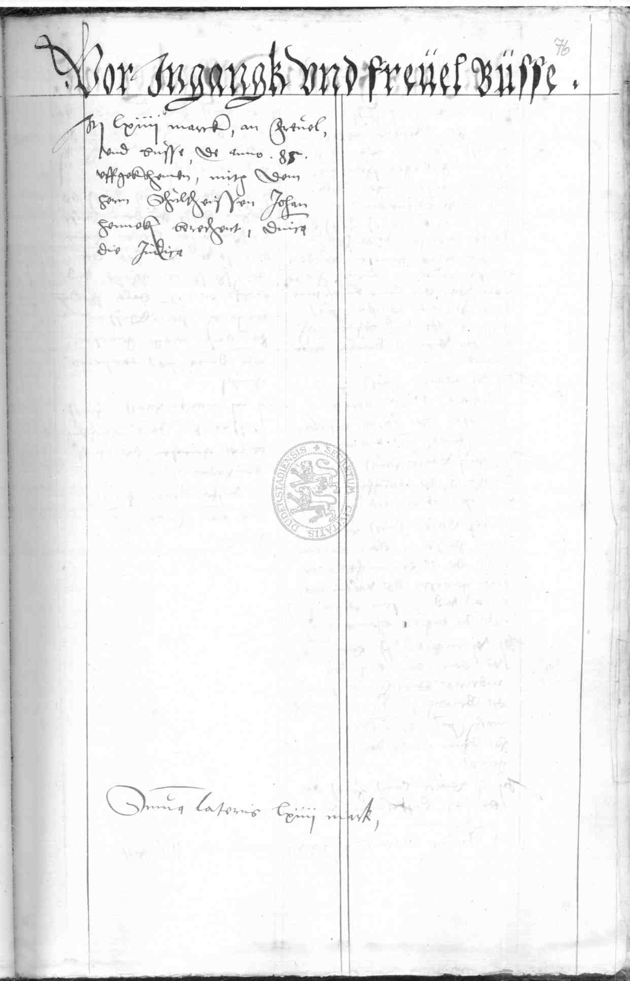 | Rubrum: | vor ingangk und frevel busse |