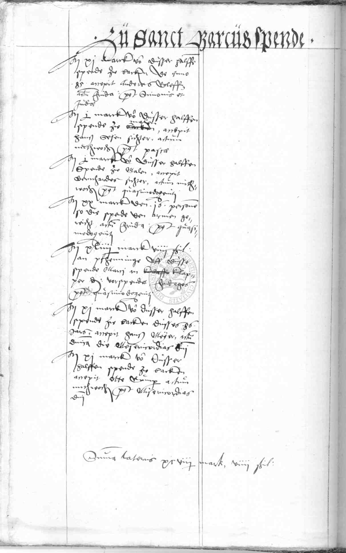 | Rubrum: | zu Sanct Marcus spende |
