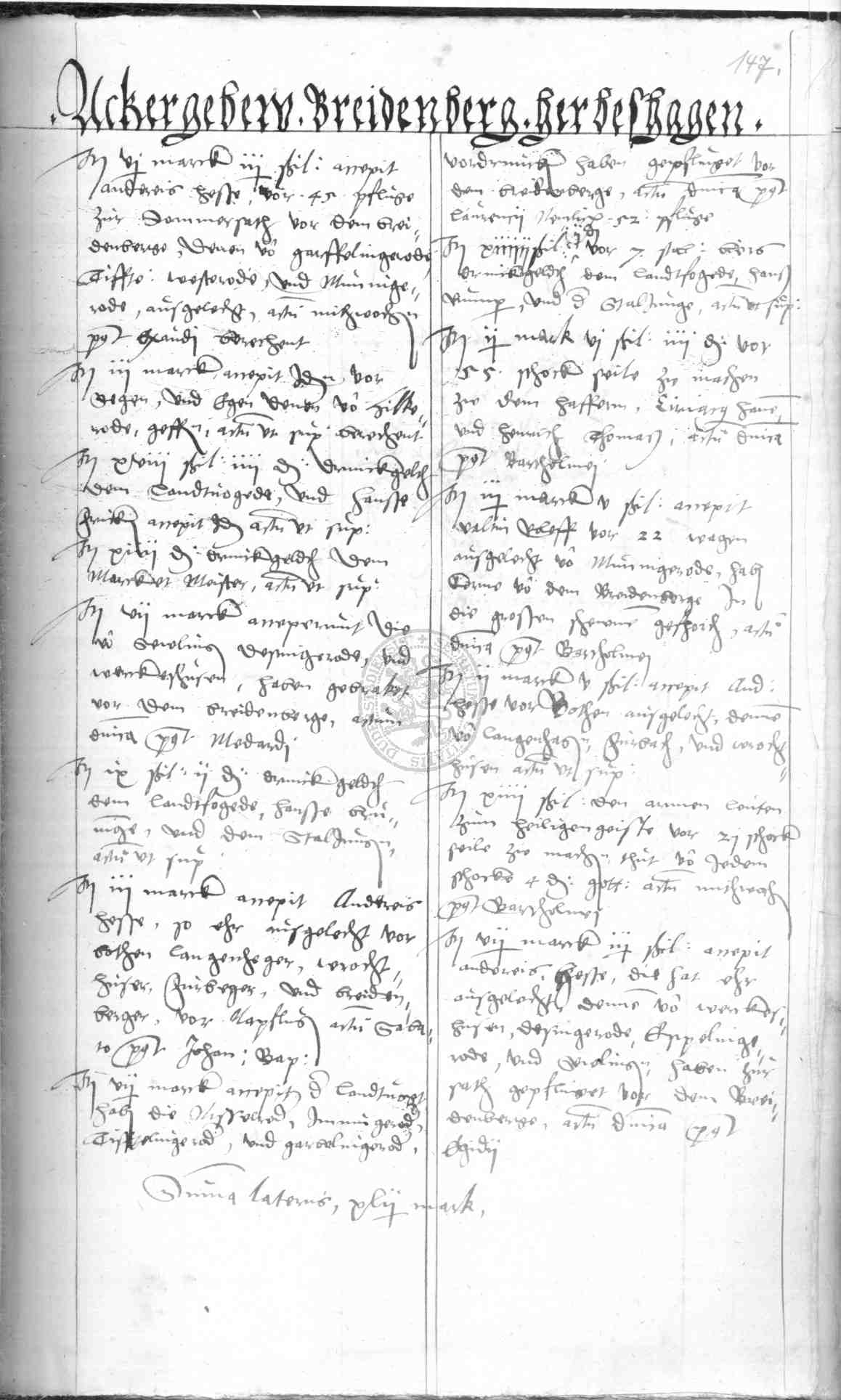 | Rubrum: | ackergebeu Breidenberg, Herbeshagen |
