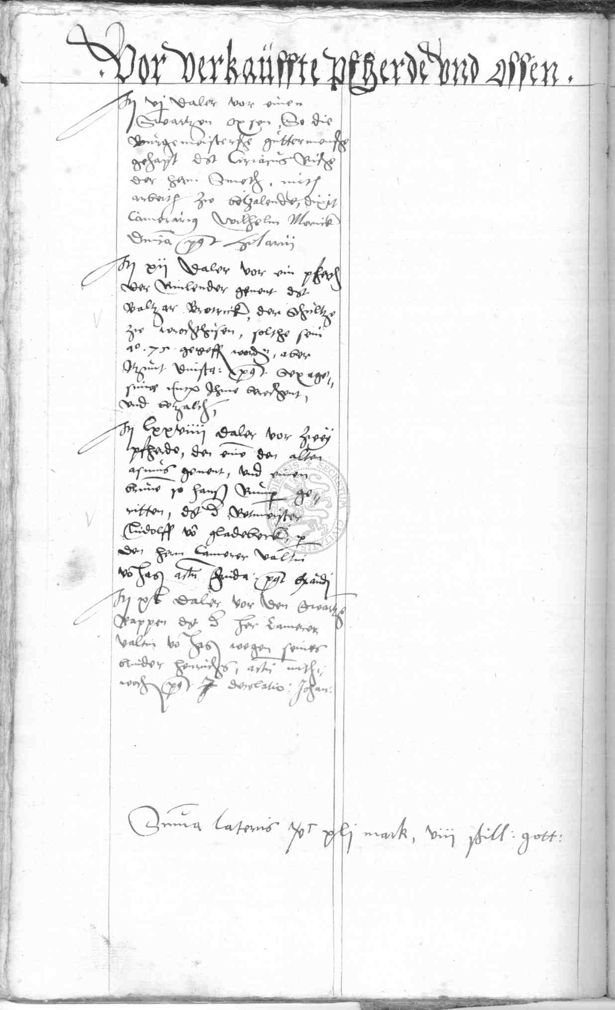 | Rubrum: | vor verkauffte pfherde und ossen |