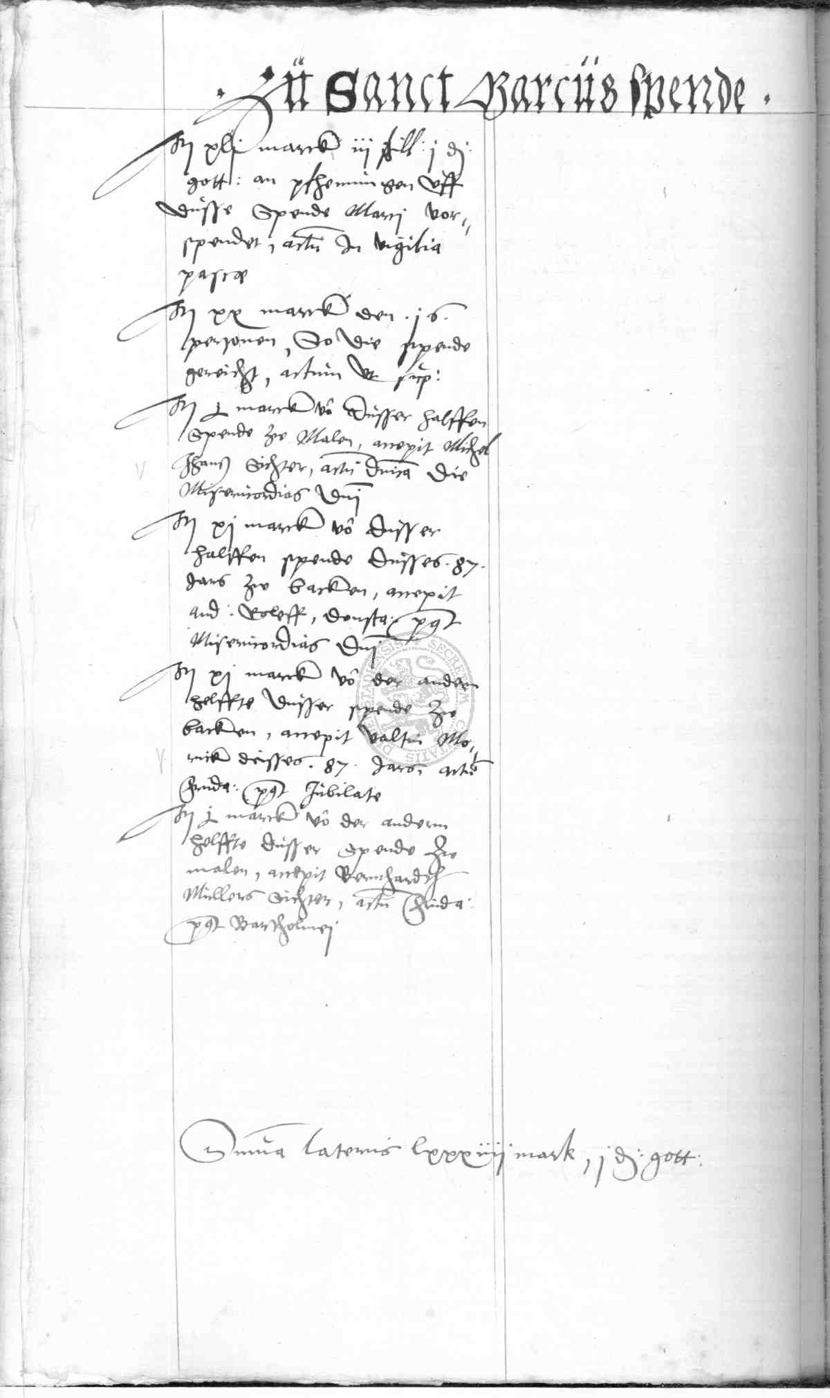 | Rubrum: | zu Sanct Marcus spende |