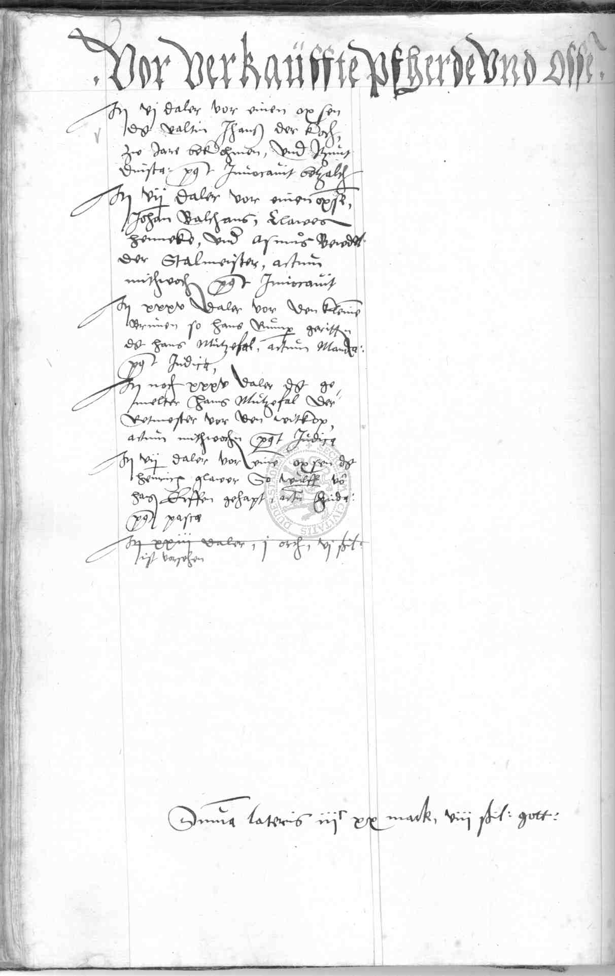 | Rubrum: | vor verkauffte pfherde und ossen |