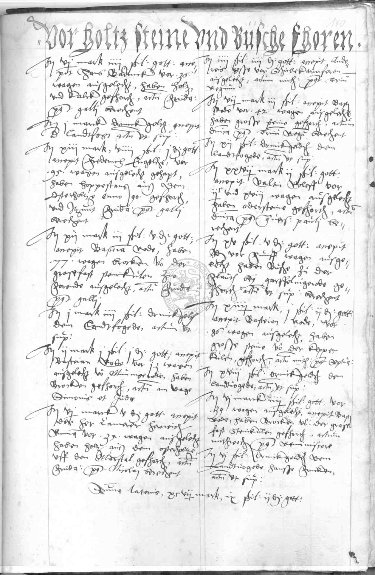 | Rubrum: | vor holtz, steine und busche fhoren |