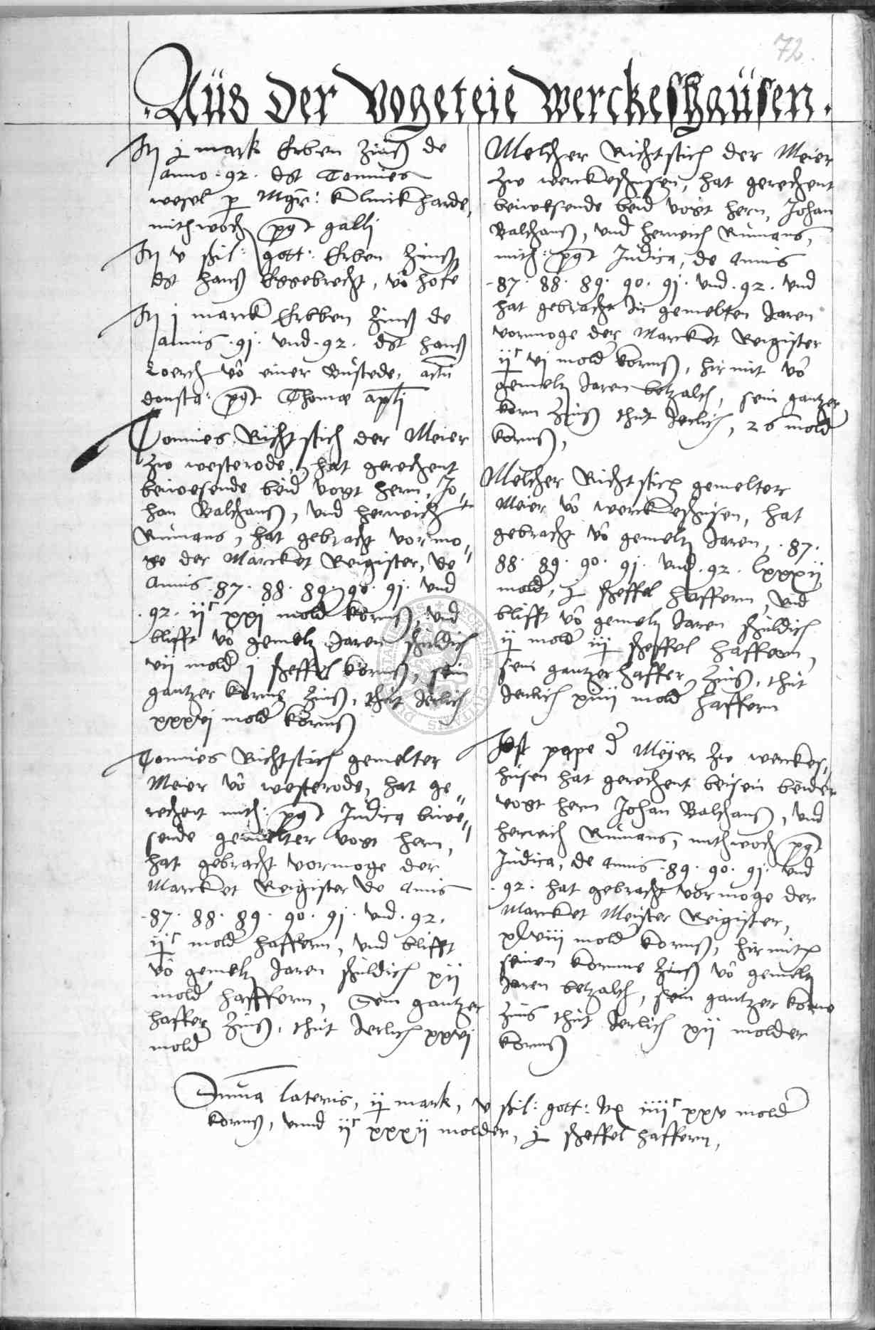 | Rubrum: | aus der vogeteie Werckeshausen |