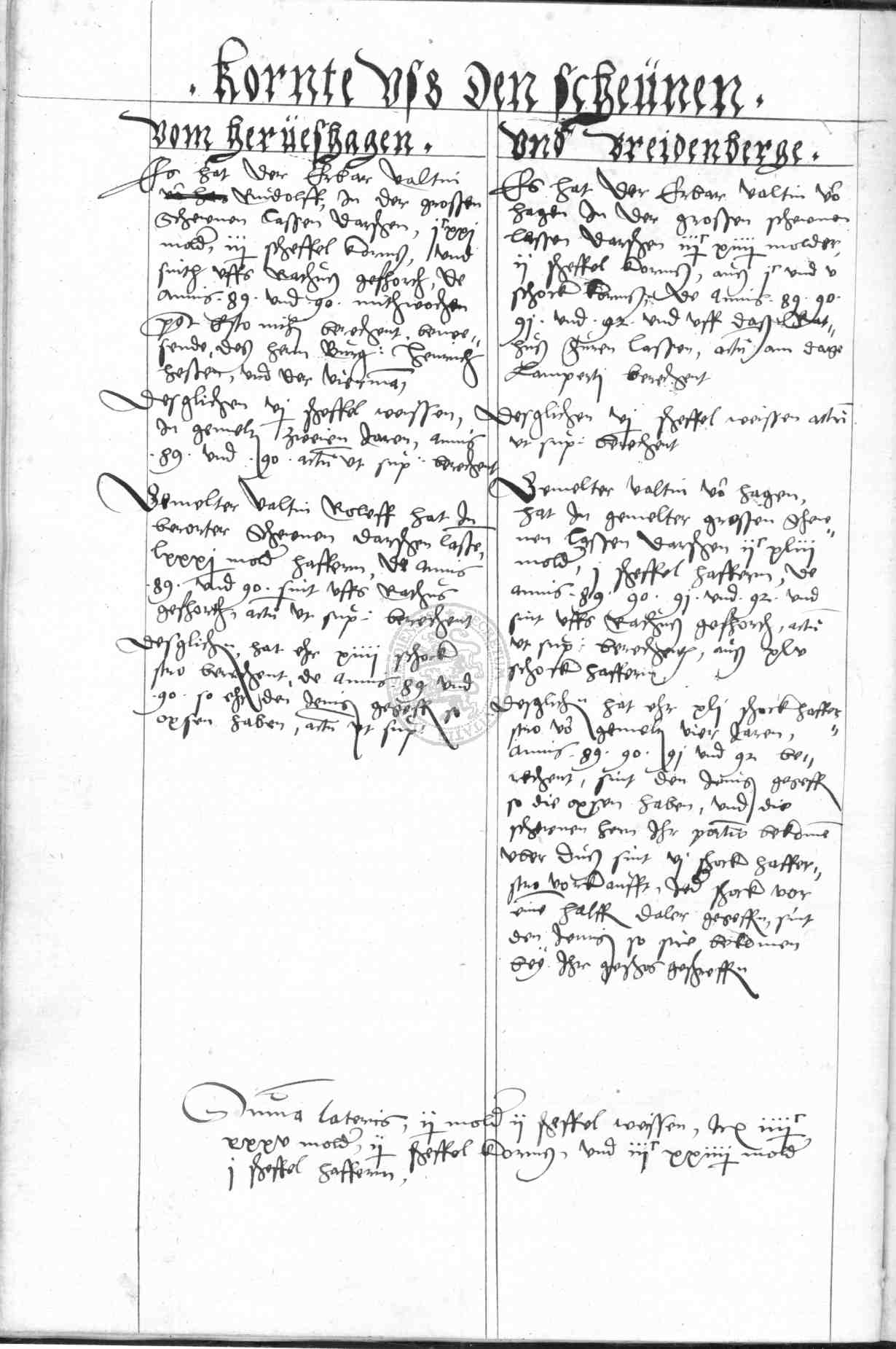 | Rubrum: | kornte uss den scheunen vom Herveshagen und Breidenberge |