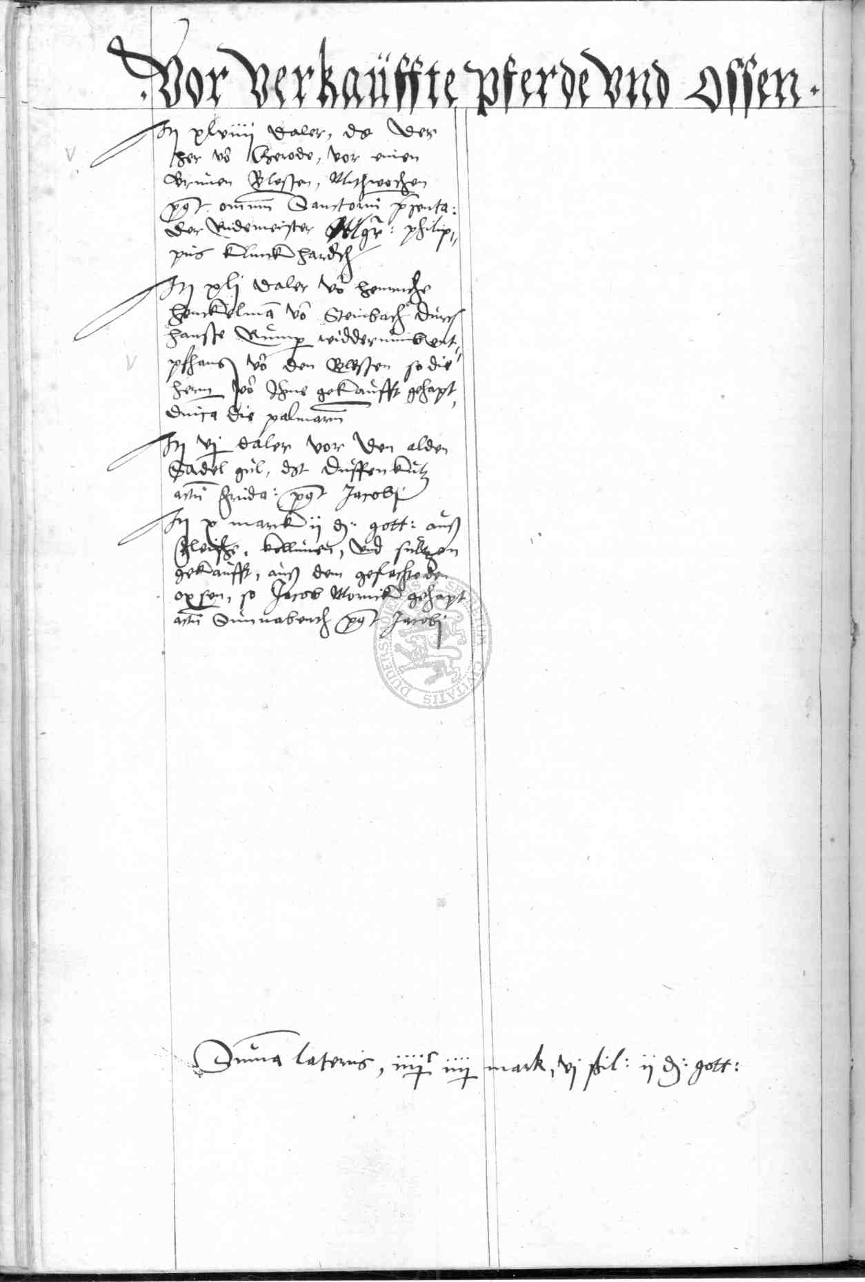 | Rubrum: | vor verkauffte pfherde und ossen |