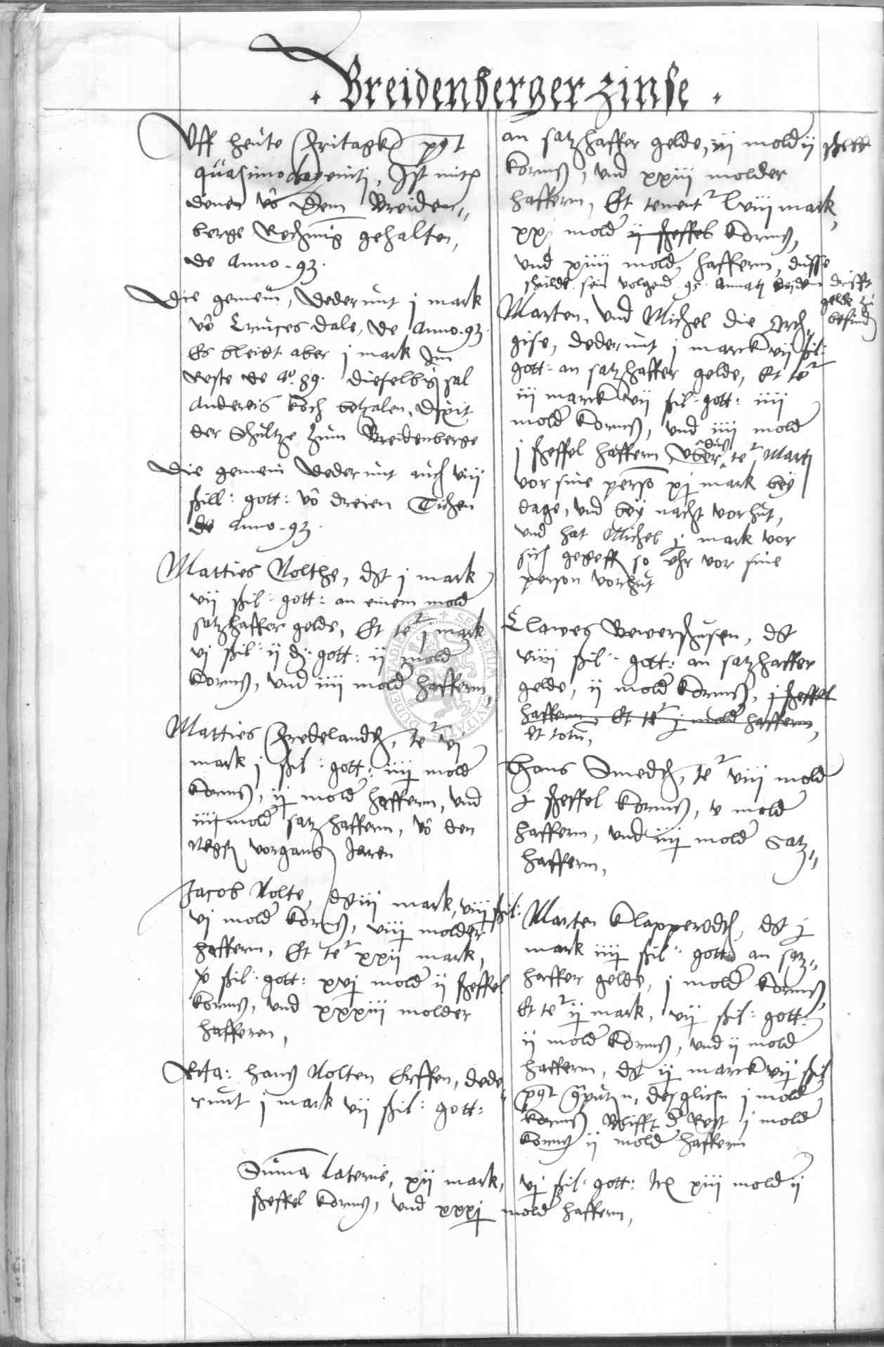 | Rubrum: | Breidenberger zinse |