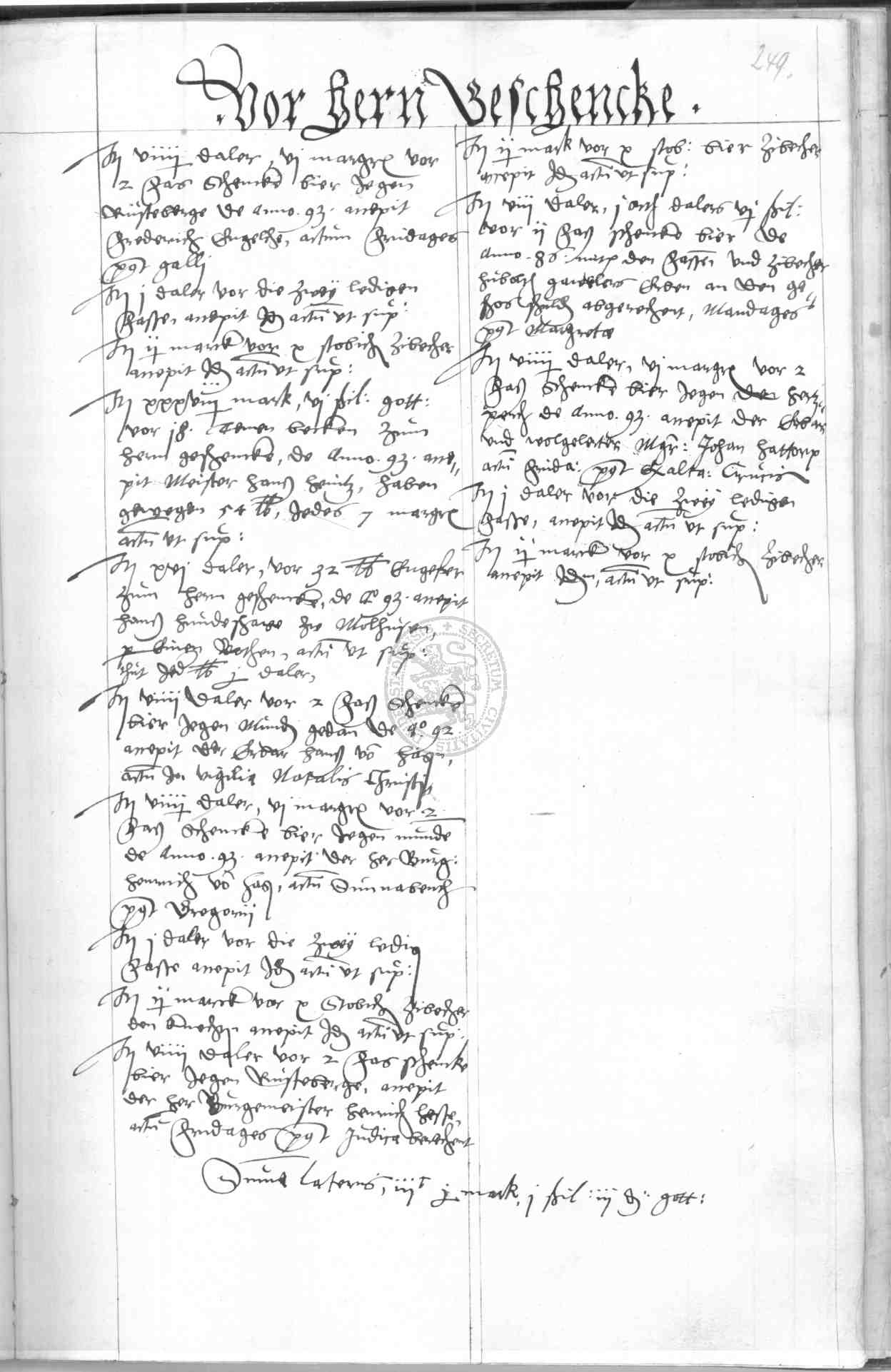 | Rubrum: | vor hern geschencke |