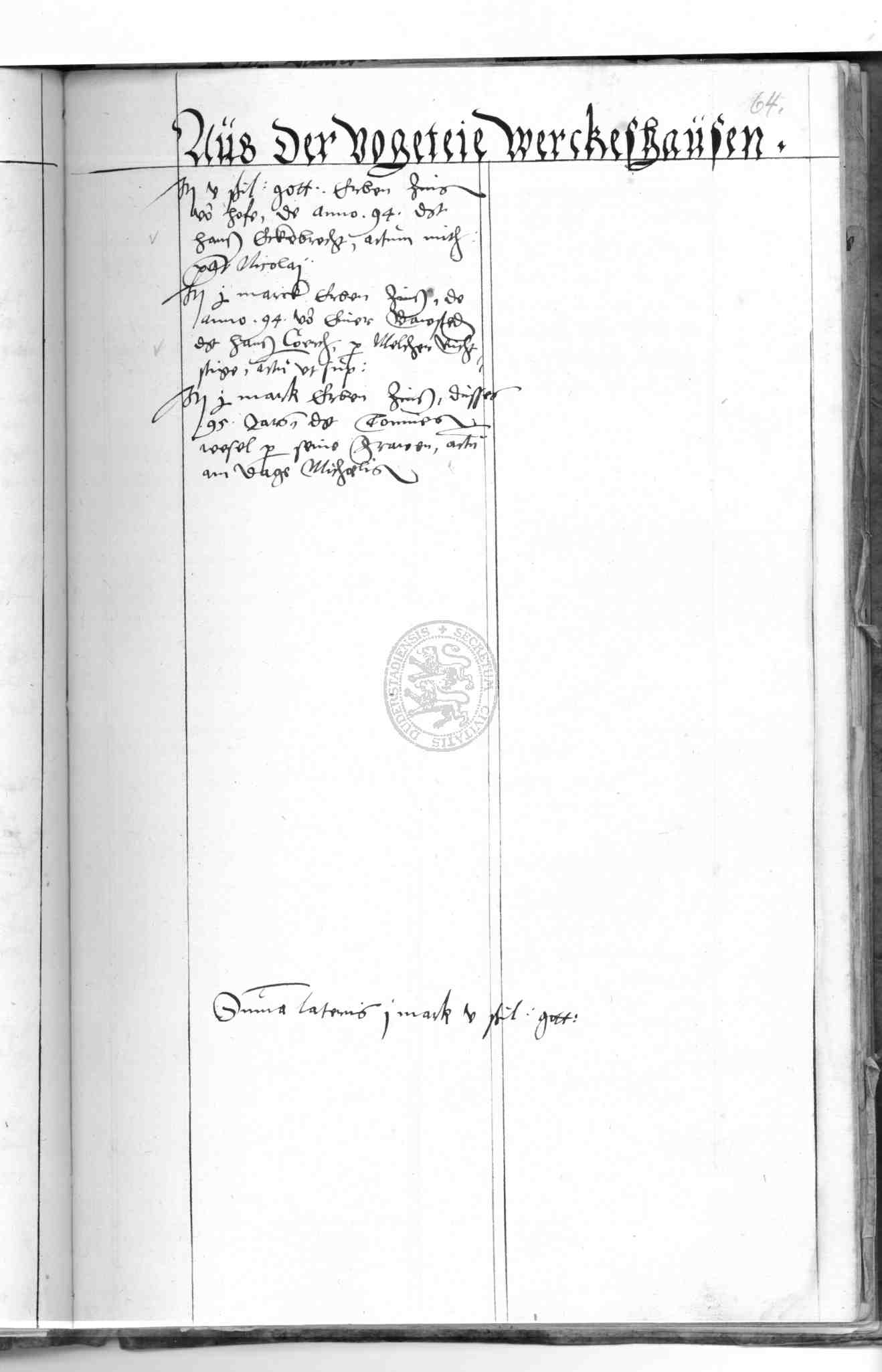 | Rubrum: | aus der vogeteie Werckeshausen |