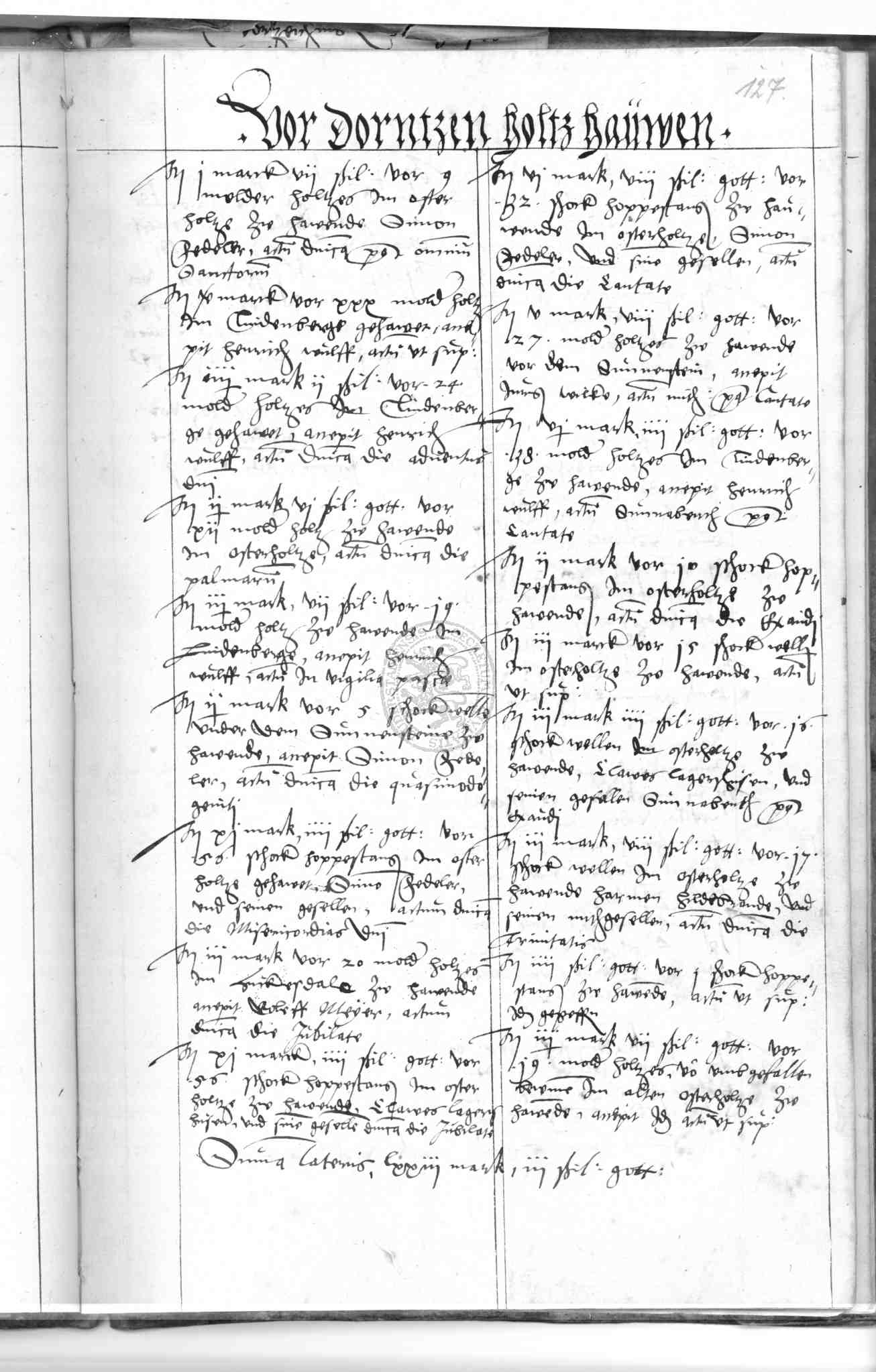 | Rubrum: | vor dorntzen holtz hauwen |